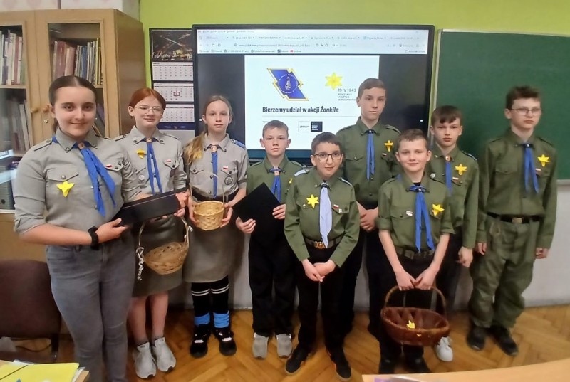 Jak co roku, społeczność naszej szkoły aktywnie włącza się w ogólnopolską akcję edukacyjną "Żonkile", upamiętniającą rocznicę wybuchu powstania w getcie warszawskim. Chętni uczniowie klas IV-VI przygotowali papierowe żonkile - symbole pamięci o wydarzeniach sprzed 83 lat. W miniony piątek zostały one rozdane wśród szkolnej społeczności. Ponadto w wielu klasach zostały przeprowadzone lekcje dotyczące powstania w getcie warszawskim. Dzięki tej akcji pielęgnowana jest pamięć o uczestnikach powstania.