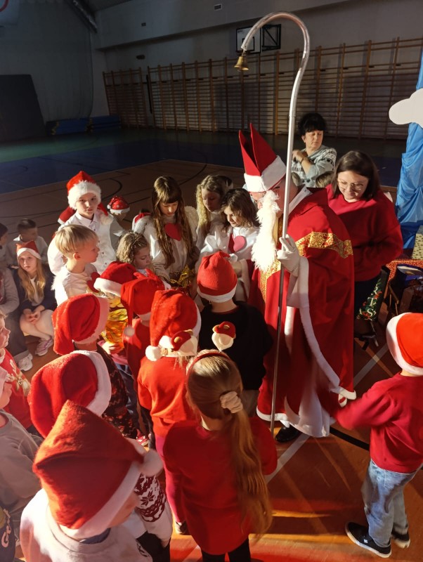 Wczoraj w naszej szkole w niezwykle urokliwej, bajkowej scenerii nieba odbyło się wyjątkowe przedstawienie o Świętym Mikołaju. Na jasnej, rozświetlonej błękitem scenie, pośród chmur i migoczących gwiazd, pracowite aniołki z klasy 4a z zapałem przygotowywały prezenty dla dzieci z całego świata. Atmosfera była pełna ciepła, radości i świątecznego oczekiwania.