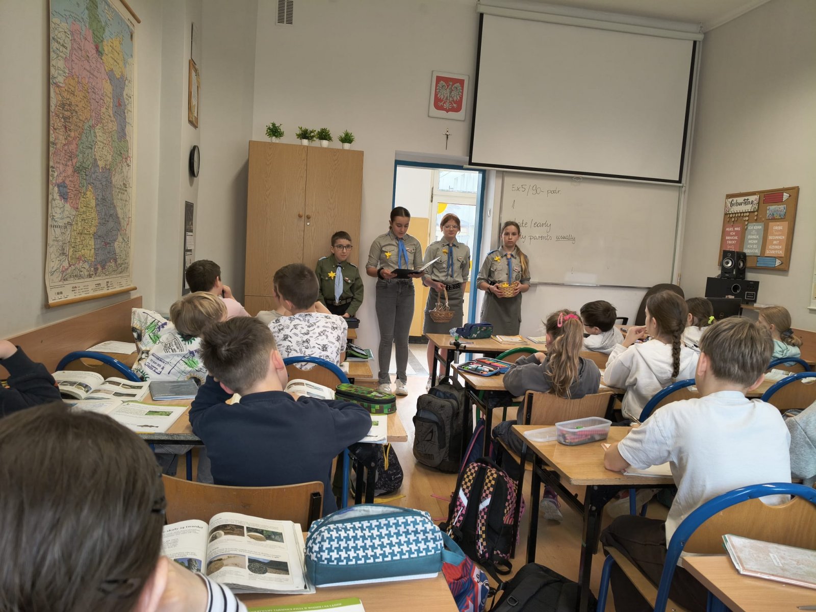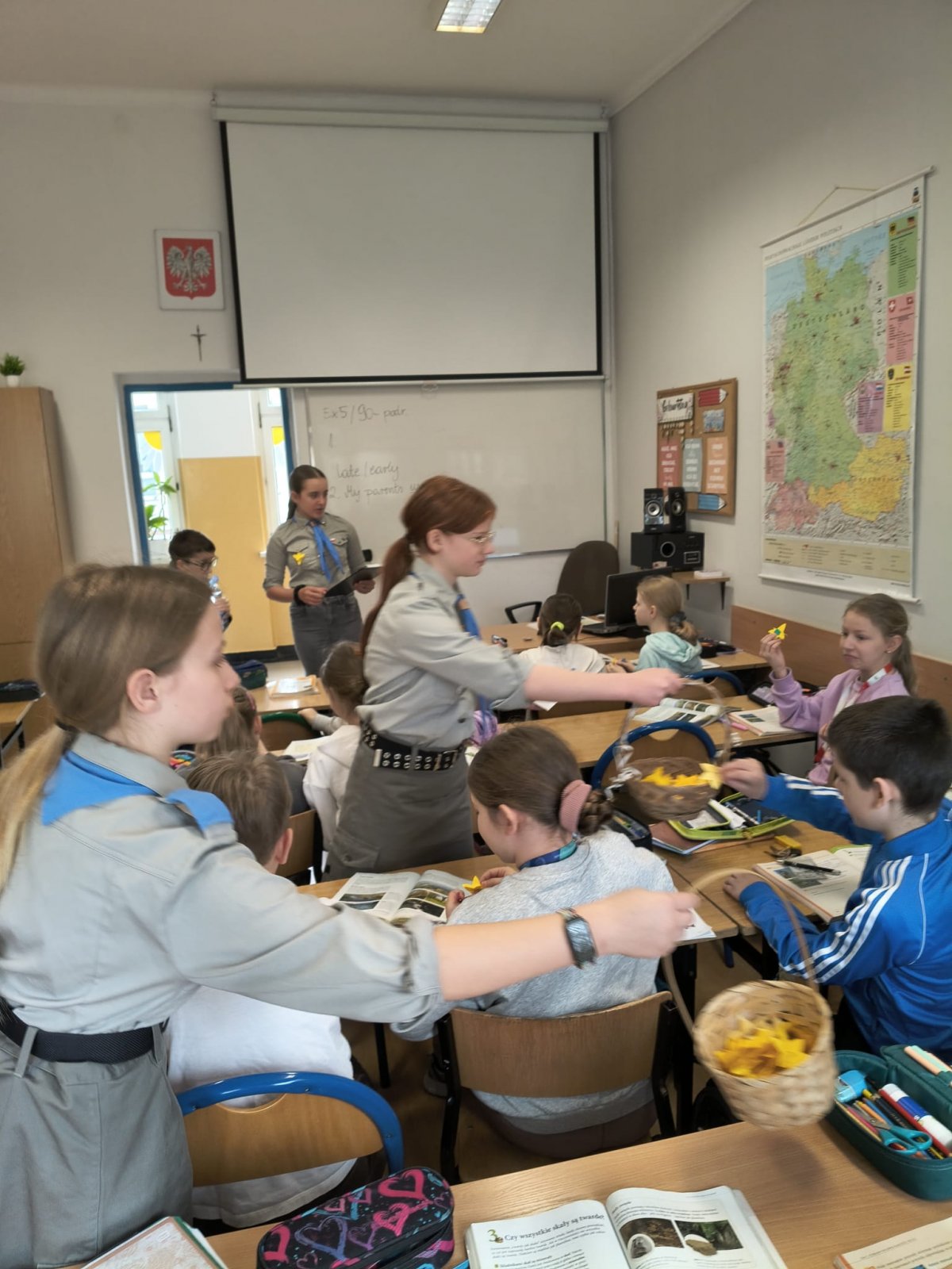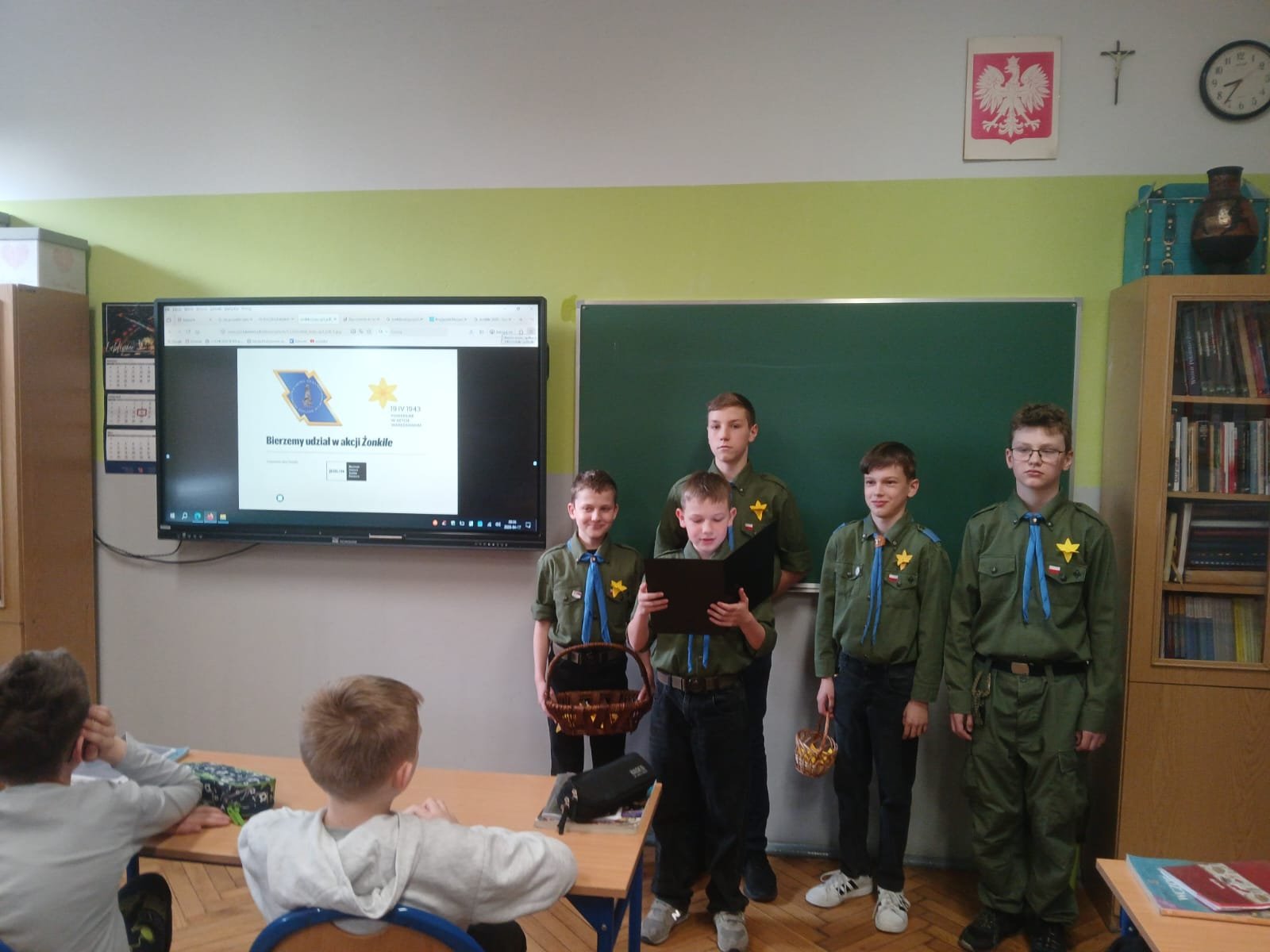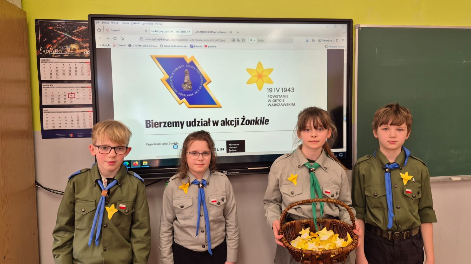 Jak co roku, społeczność naszej szkoły aktywnie włącza się w ogólnopolską akcję edukacyjną "Żonkile", upamiętniającą rocznicę wybuchu powstania w getcie warszawskim. Chętni uczniowie klas IV-VI przygotowali papierowe żonkile - symbole pamięci o wydarzeniach sprzed 83 lat. W miniony piątek zostały one rozdane wśród szkolnej społeczności. Ponadto w wielu klasach zostały przeprowadzone lekcje dotyczące powstania w getcie warszawskim. Dzięki tej akcji pielęgnowana jest pamięć o uczestnikach powstania.