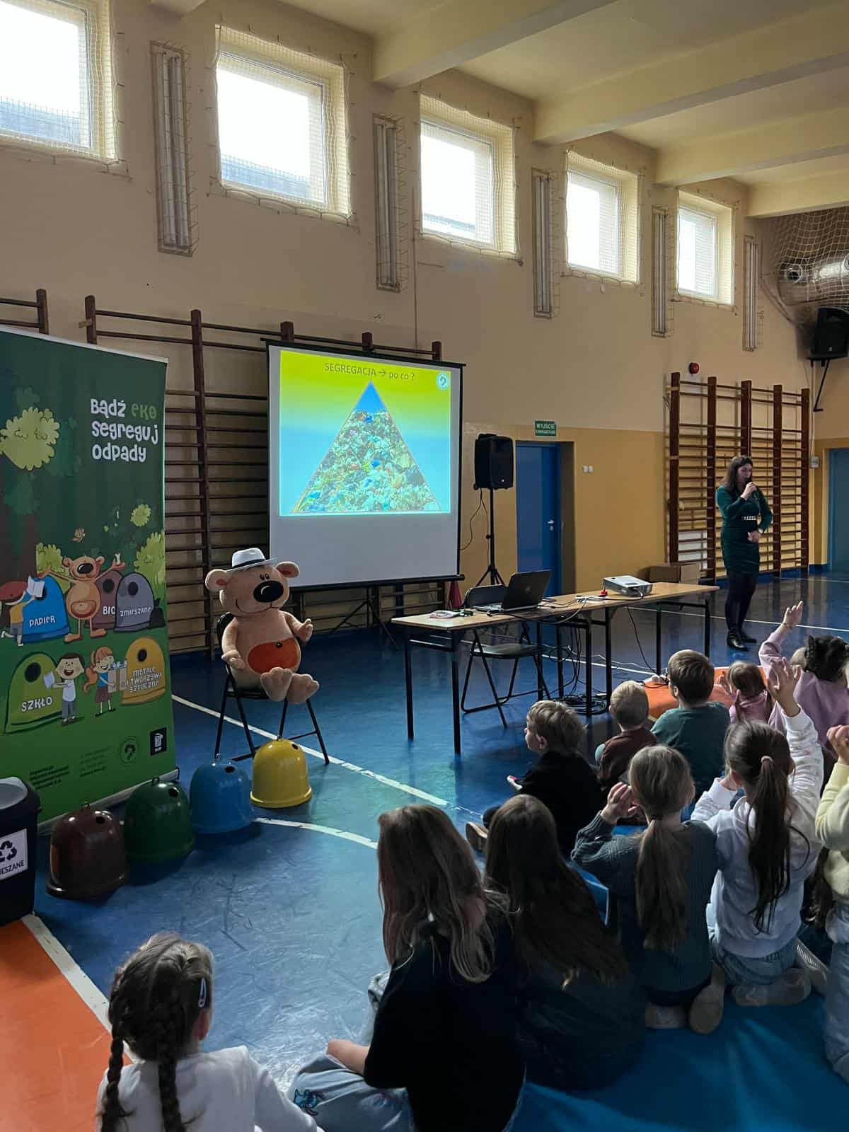 Uczniowie klas I–III wzięli udział w warsztatach ekologicznych poświęconych tematyce segregacji odpadów. Zajęcia miały na celu uświadomienie najmłodszym, jak ważne jest dbanie o środowisko i prawidłowe segregowanie śmieci.