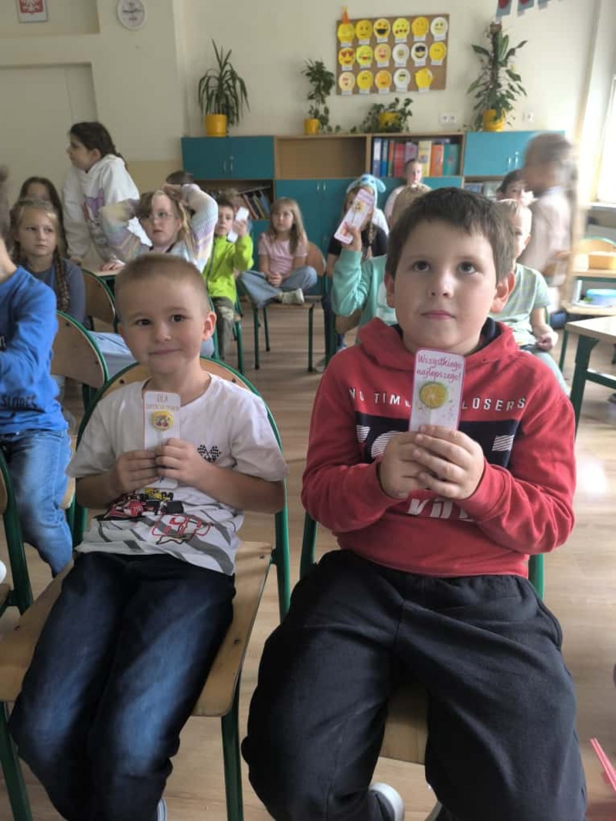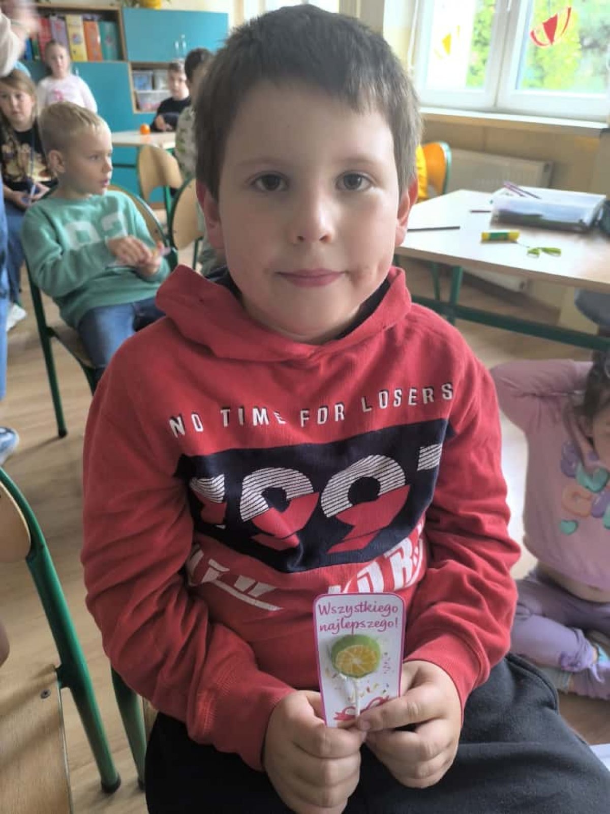 Dnia 30 września tradycyjnie obchodziliśmy w świetlicy Dzień Chłopaka. Był to dzień, w którym chłopcy mieli szczególne względy. Postanowiliśmy uczcić to święto rozpoczynając od muzycznych życzeń, które dziewczynki odśpiewały swoim kolegom. Wszyscy chłopcy otrzymali po zakładce z niespodzianką, następnie zostali wyróżnieni odznaką "NAJLEPSZEGO CHŁOPAKA NA ŚWIECIE".