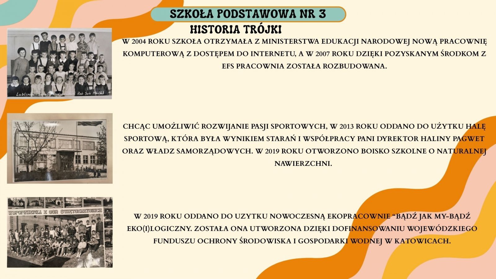 Szkoła to nie tylko budynek, ale przede wszystkim ludzie, którzy ją tworzą. Przez 66 lat istnienia szkoły wykształciło się kilka tysięcy dzieci, a nauczało kilkuset nauczycieli. To uczniowie, ich rodzice, nauczyciele i pracownicy szkoły tworzą jej niepowtarzalny klimat. W prawie każdej rodzinie jest "ktoś" z Trójki. To szkoła pokoleniowa, w której takie wartości jak rodzina, szacunek i wychowanie są na pierwszym miejscu. Kolejne pokolenia zdobywają w murach szkoły wiedzę i umiejętności niezbędne w dorosłym życiu.