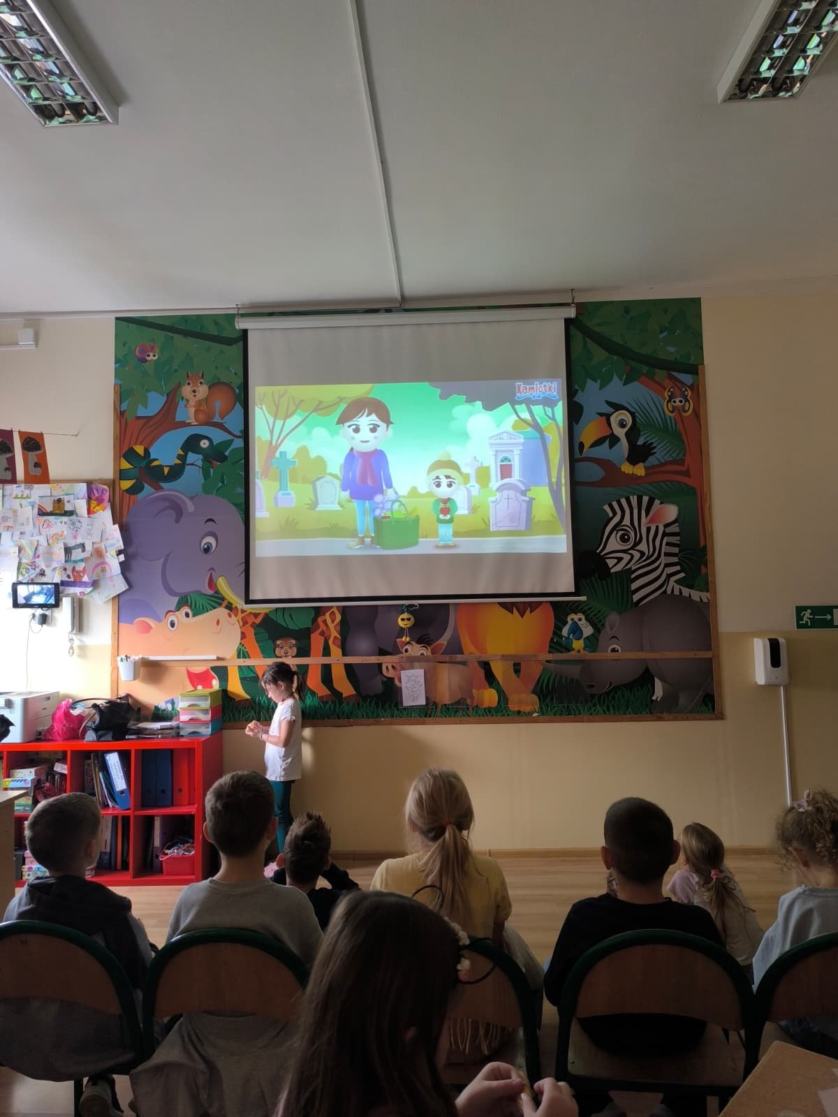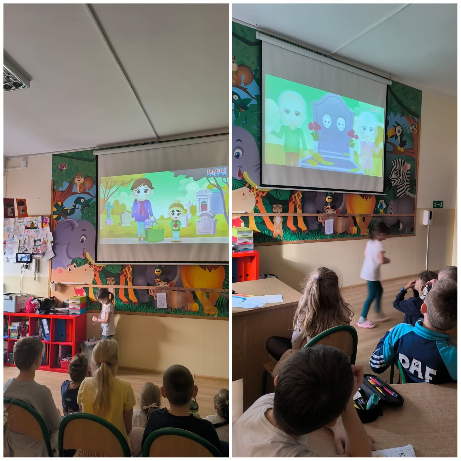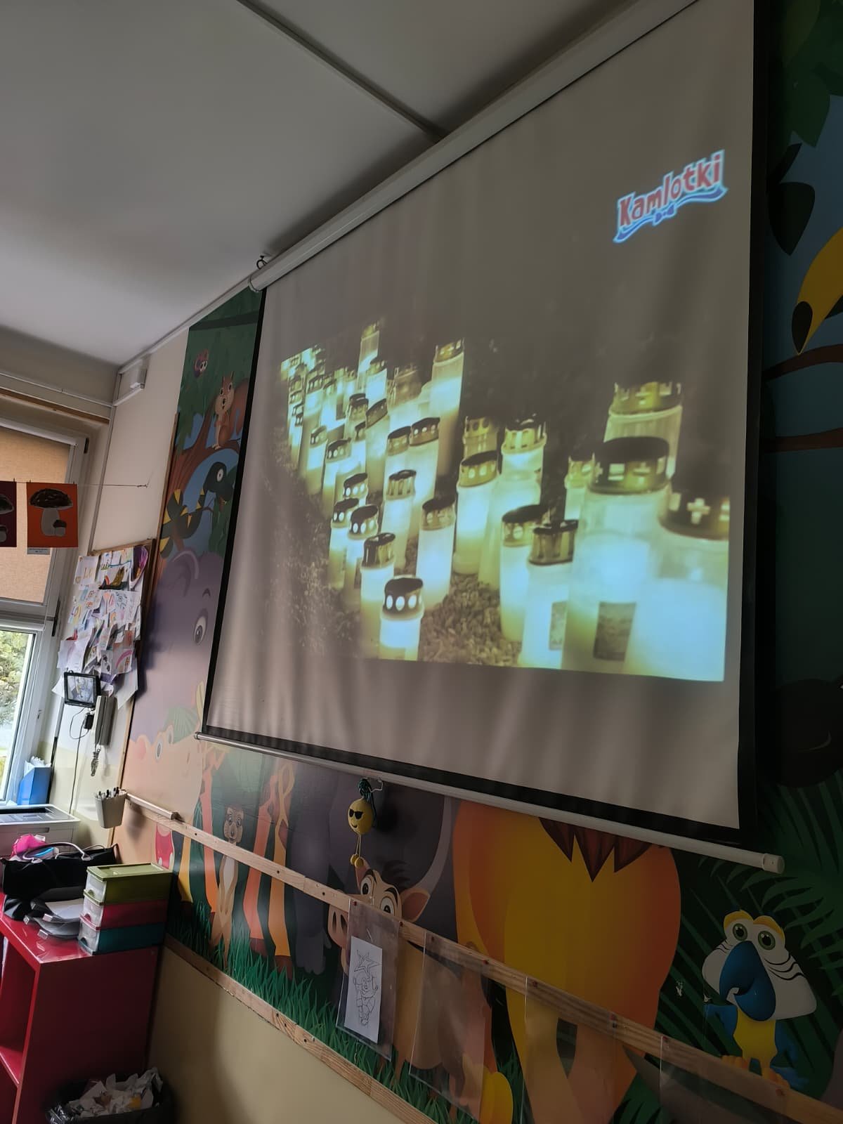 Dzień Wszystkich Świętych to czas zadumy i refleksji, zapalamy znicze na grobach naszych bliskich, wspominamy, tęsknimy, ale i też pamietamy o tych, którzy zginęli na wojnie, za naszą Ojczyznę. Tuż przed Świętem Zmarłych uczniom uczęszczającym do świetlicy szkolnej zaprezentowano film edukacyjny, po którym odbyła się burza mózgów poruszająca tematy: czym jest dzień wszytskch świętych, skąd się wzięło to święto, jak obchodzimy ten dzień, dlaczego zapalamy znicze, jak możemy pamiętać o bliskich. Na zakończenie zajęć Świetliczki rozwiązywały karty pracy.