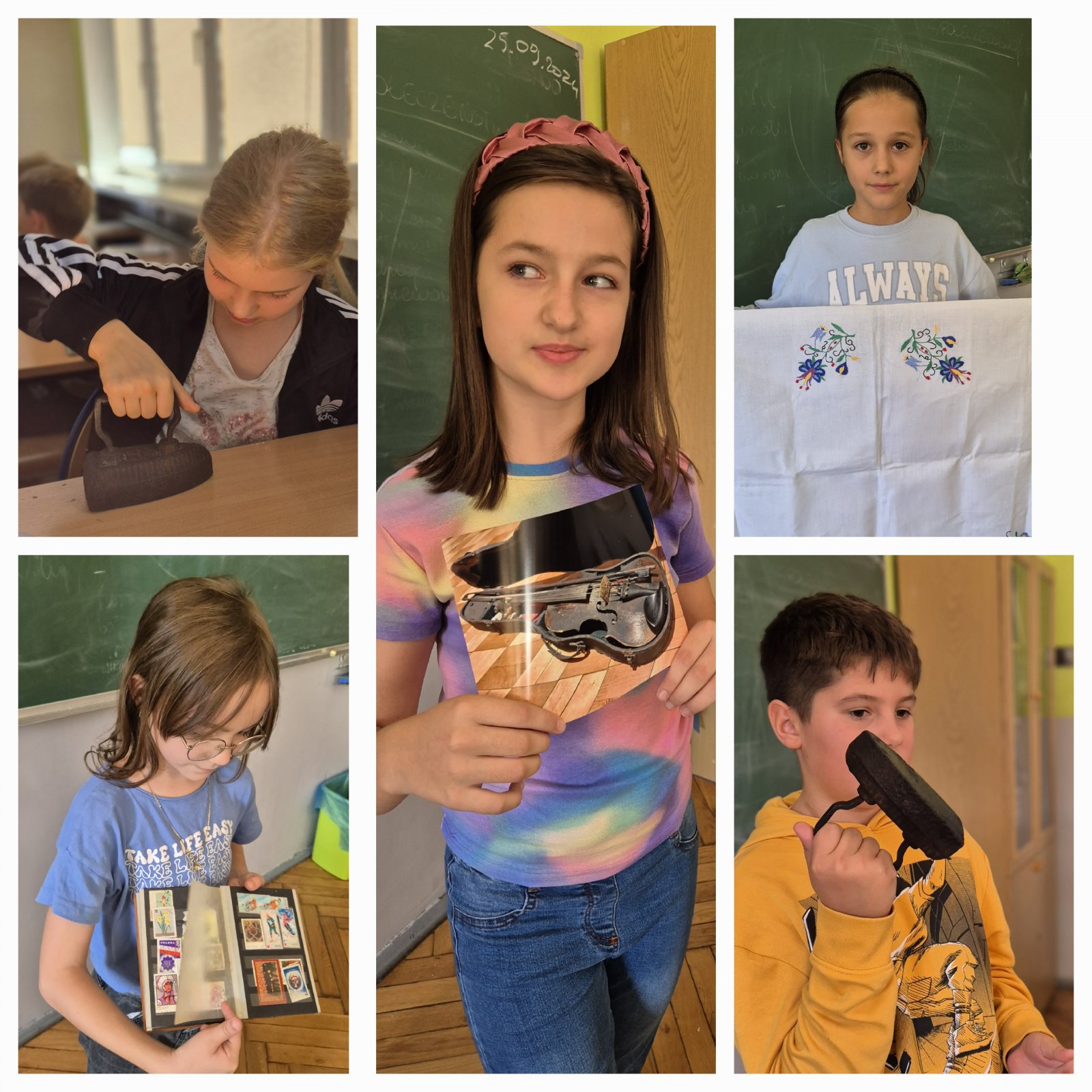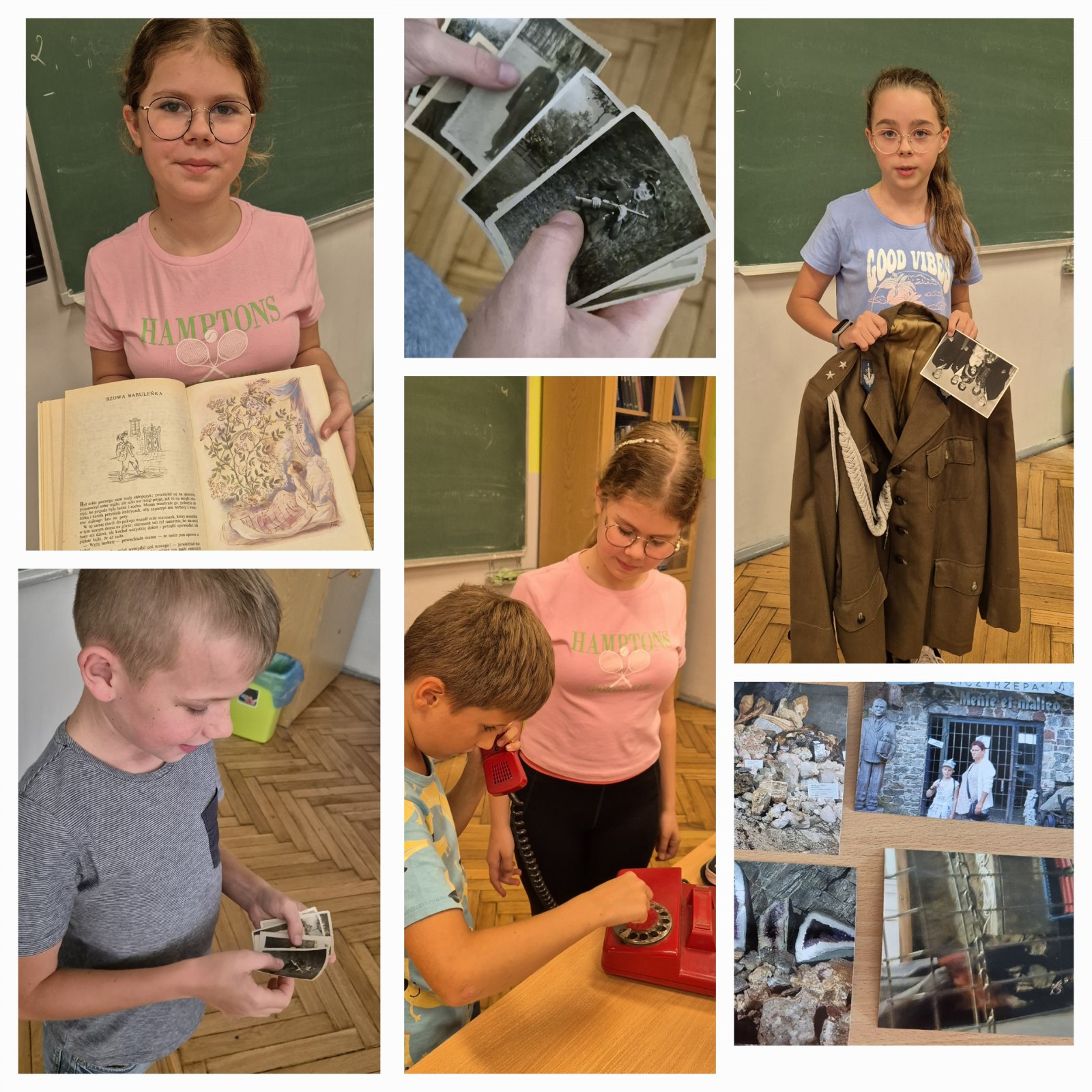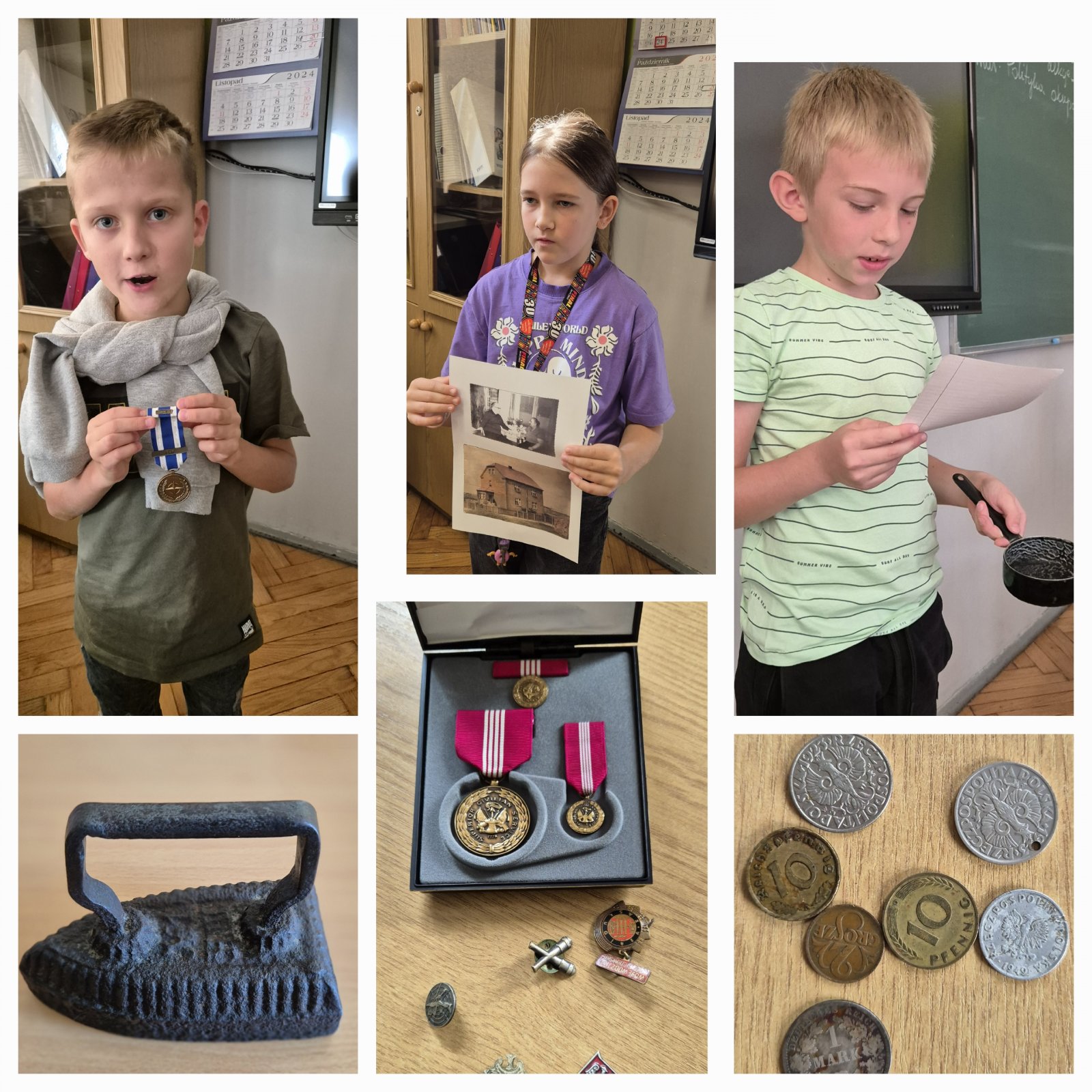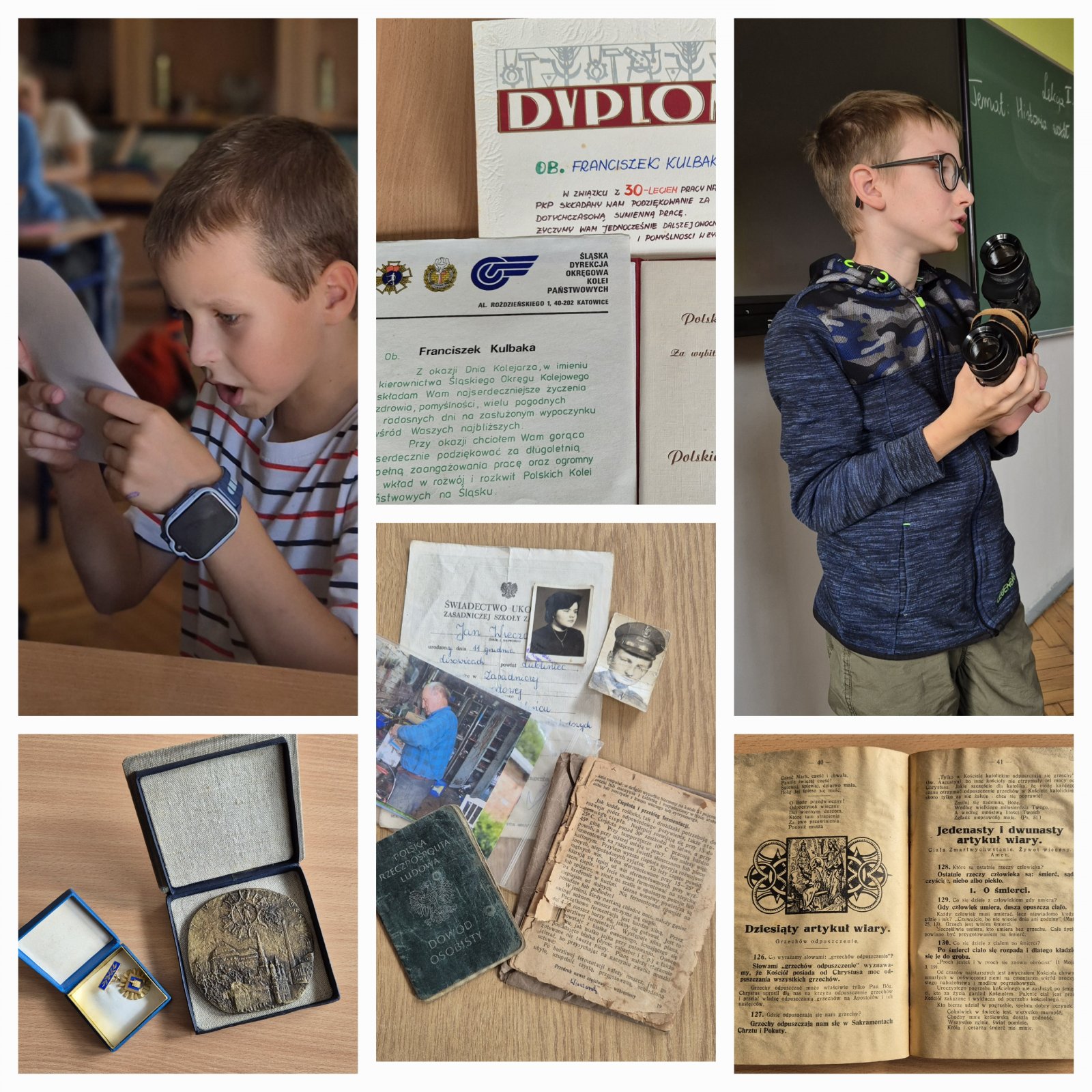 W ramach lekcji historii uczniowie klas czwartych prezentowali swoim kolegom pamiątki rodzinne. Z pasją i pełnym zaangażowaniem młodzi historycy opowiadali o swoich skarbach, rodzinnych historiach i wspomnieniach przekazywanych z pokolenia na pokolenie. Uczniowie mogli również zobaczyć pamiątki zebrane w gablotach "Szkolnej Izby Pamięci" znajdującej się w naszej sali historycznej.