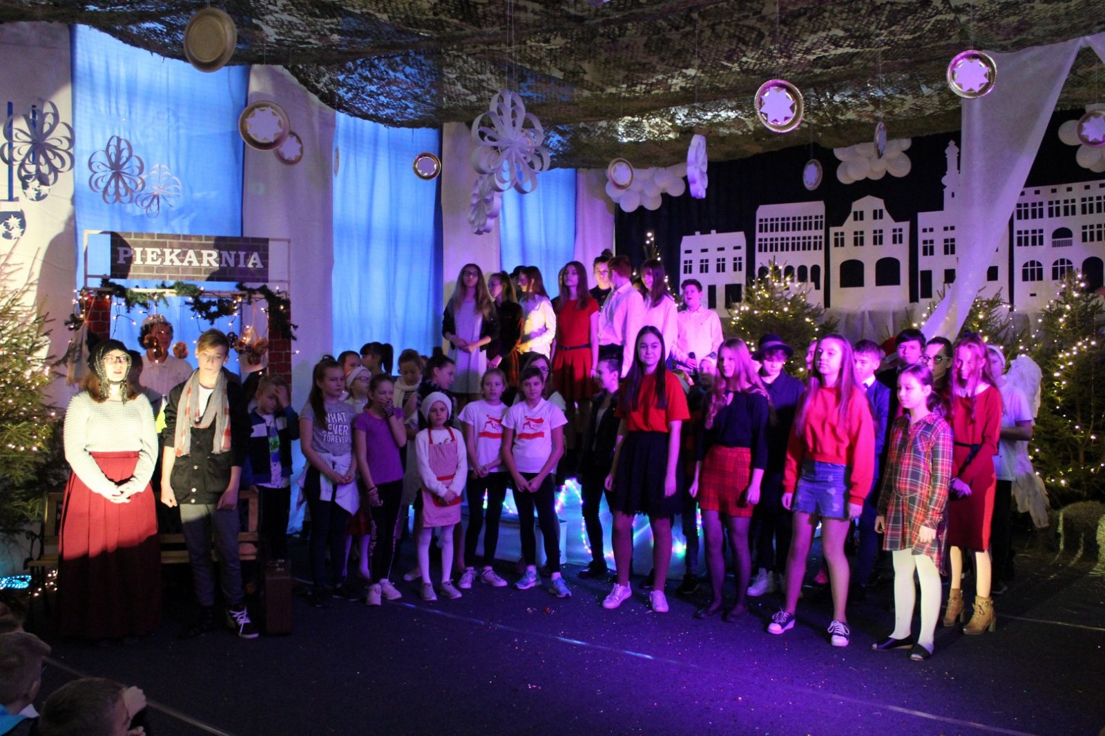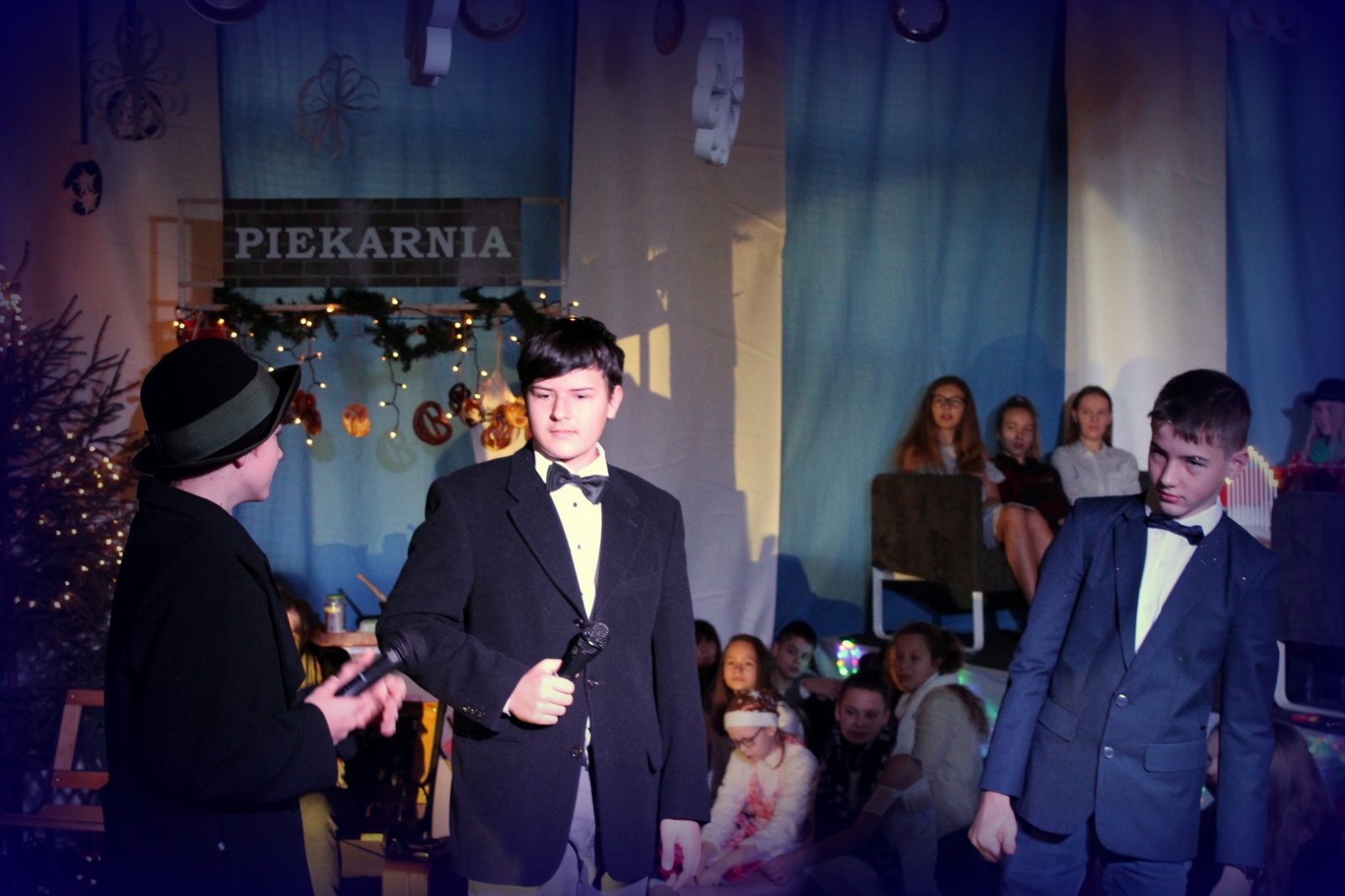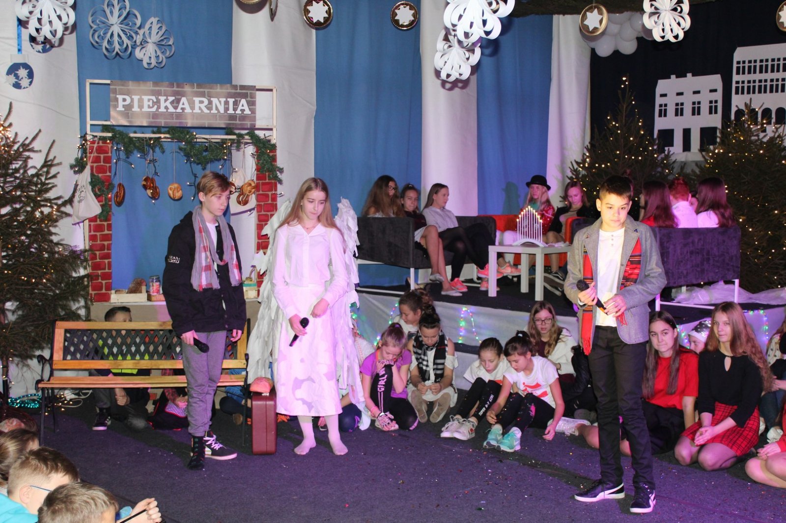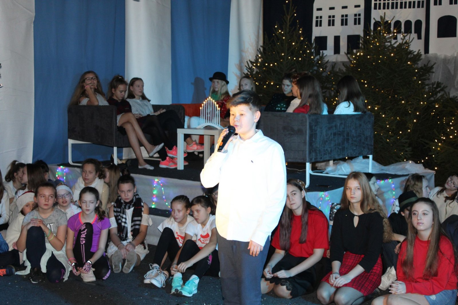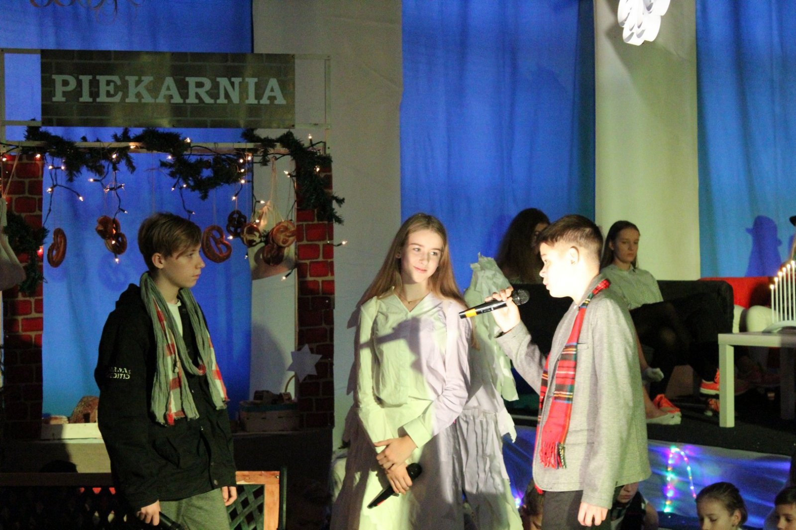 nosił tytuł „Chłopiec z zapalniczkami”. W rolę tytułowego bohatera wcielił się nasz uczeń Krystian Stańczykiewicz, do niedawna aktor Teatru Rozrywki w Chorzowie. Gościnnie, z wykonaniem piosenki Zbigniewa Wodeckiego wystąpiła nasza absolwentka p.Karolina Stąpor. W przedstawieniu brała udział prawie "setka" uczniów z klas 4-8, która przez 4 kolejne dni wzbudzała zachwyt wśród zgromadzonych rodziców i ich rodzin, przedstawicieli Rady Miasta, nauczycieli i pracowników oraz uczniów "Trójki". Pani Dyrektor Anna Janik złożyła wszystkim świąteczne życzenia, a dzieci i młodzież swoim pięknym śpiewem i grą wprowadzili nas w świąteczny klimat.