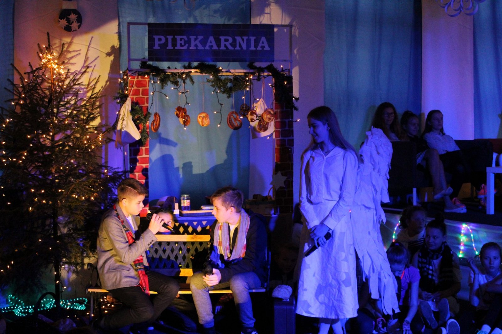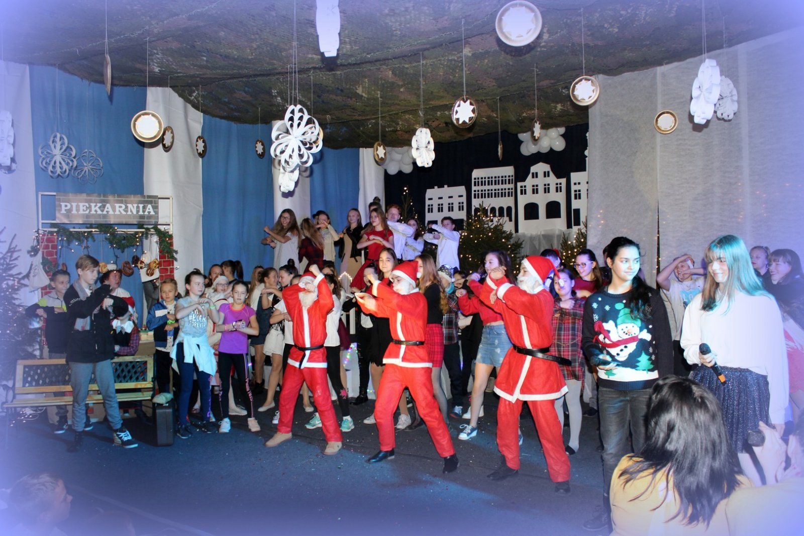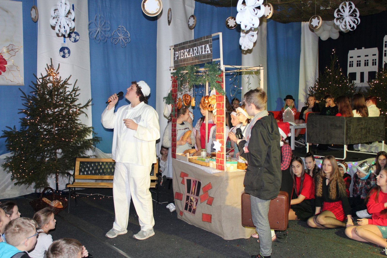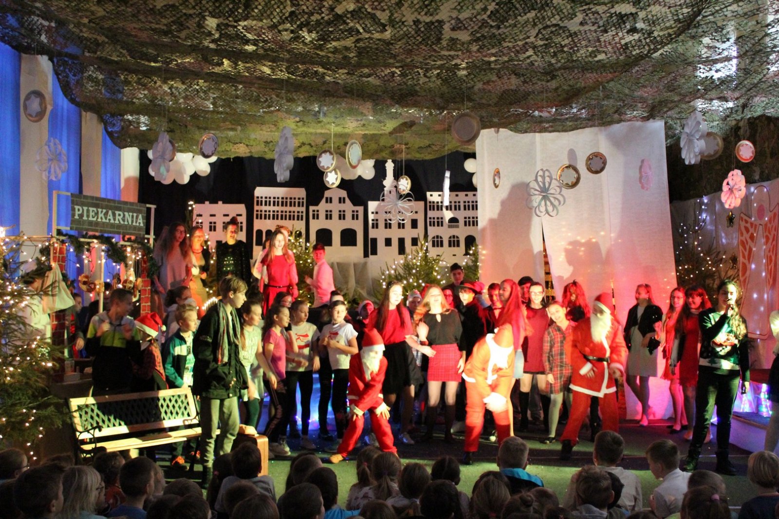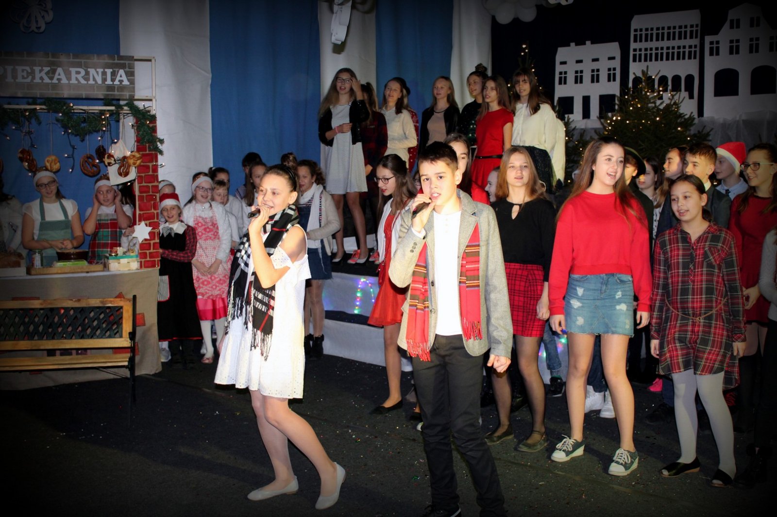 nosił tytuł „Chłopiec z zapalniczkami”. W rolę tytułowego bohatera wcielił się nasz uczeń Krystian Stańczykiewicz, do niedawna aktor Teatru Rozrywki w Chorzowie. Gościnnie, z wykonaniem piosenki Zbigniewa Wodeckiego wystąpiła nasza absolwentka p.Karolina Stąpor. W przedstawieniu brała udział prawie "setka" uczniów z klas 4-8, która przez 4 kolejne dni wzbudzała zachwyt wśród zgromadzonych rodziców i ich rodzin, przedstawicieli Rady Miasta, nauczycieli i pracowników oraz uczniów "Trójki". Pani Dyrektor Anna Janik złożyła wszystkim świąteczne życzenia, a dzieci i młodzież swoim pięknym śpiewem i grą wprowadzili nas w świąteczny klimat.