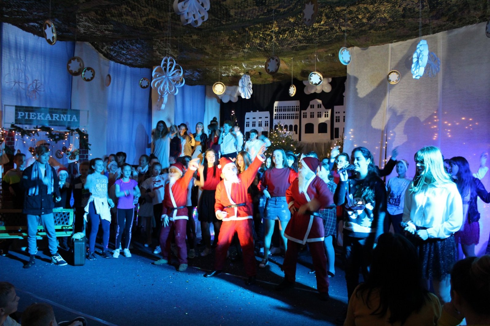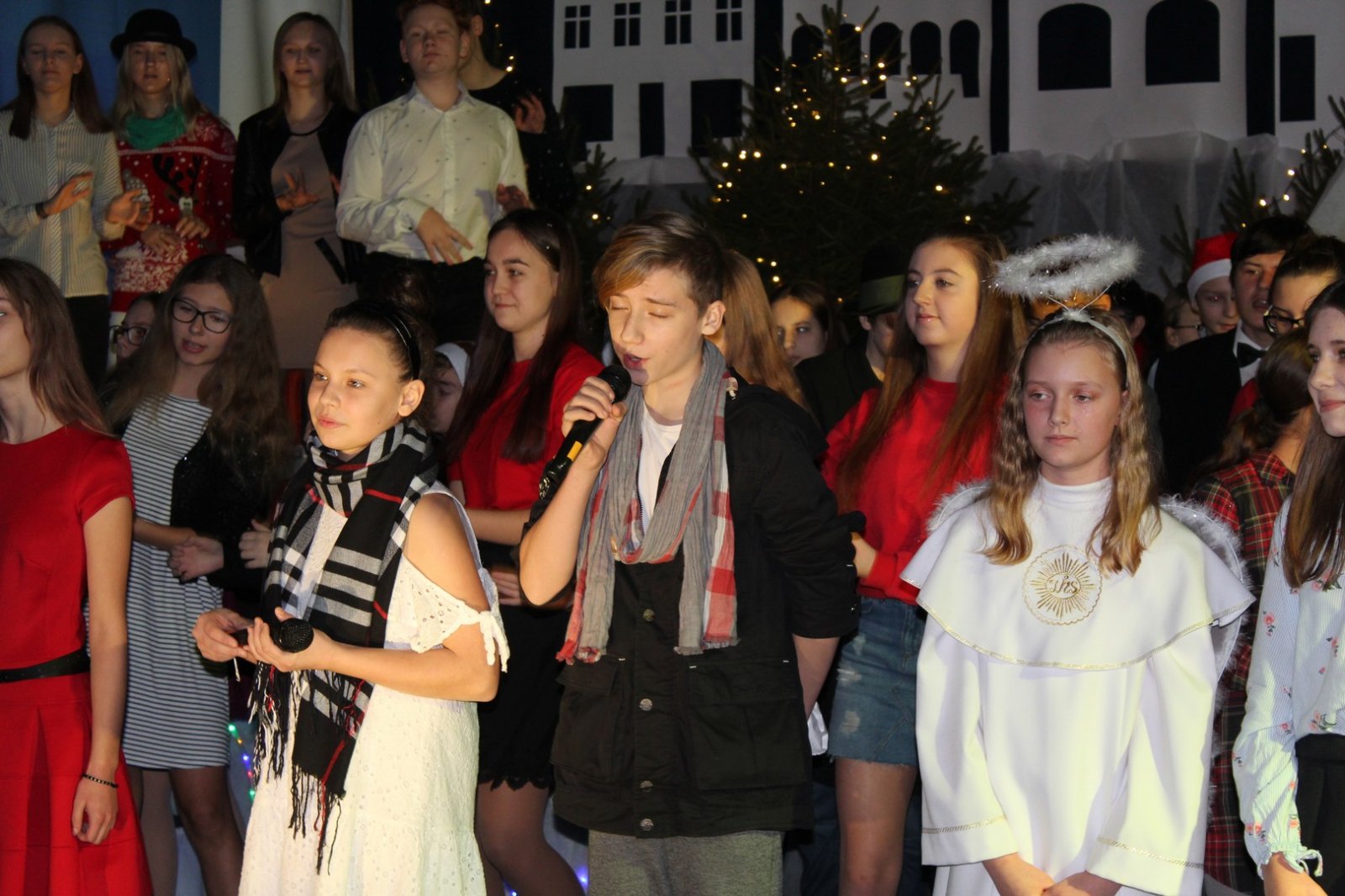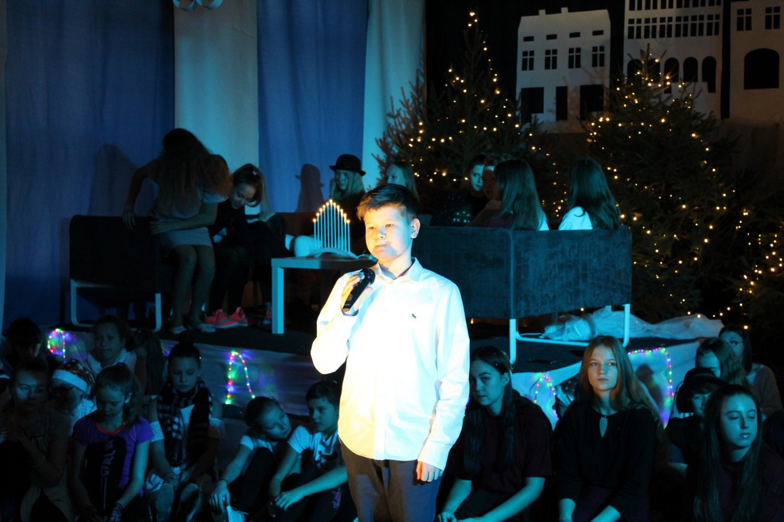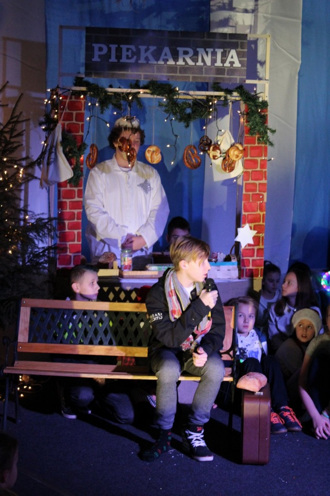 nosił tytuł „Chłopiec z zapalniczkami”. W rolę tytułowego bohatera wcielił się nasz uczeń Krystian Stańczykiewicz, do niedawna aktor Teatru Rozrywki w Chorzowie. Gościnnie, z wykonaniem piosenki Zbigniewa Wodeckiego wystąpiła nasza absolwentka p.Karolina Stąpor. W przedstawieniu brała udział prawie "setka" uczniów z klas 4-8, która przez 4 kolejne dni wzbudzała zachwyt wśród zgromadzonych rodziców i ich rodzin, przedstawicieli Rady Miasta, nauczycieli i pracowników oraz uczniów "Trójki". Pani Dyrektor Anna Janik złożyła wszystkim świąteczne życzenia, a dzieci i młodzież swoim pięknym śpiewem i grą wprowadzili nas w świąteczny klimat.