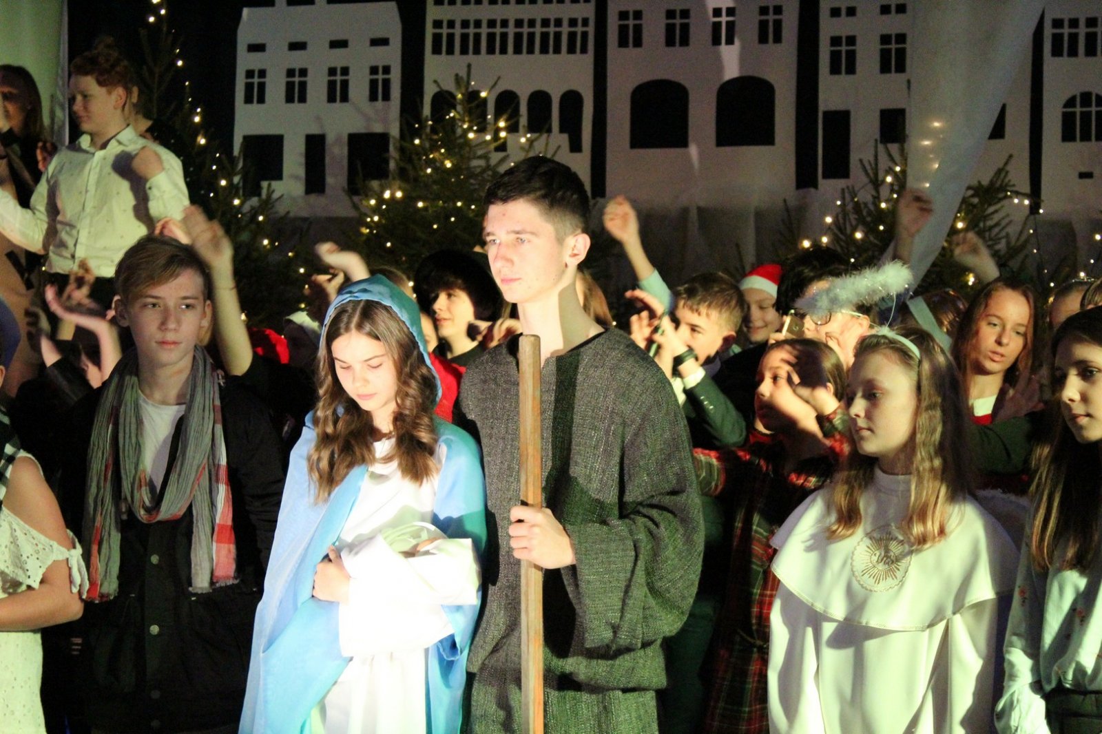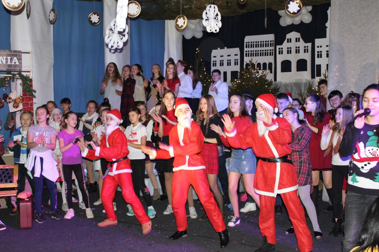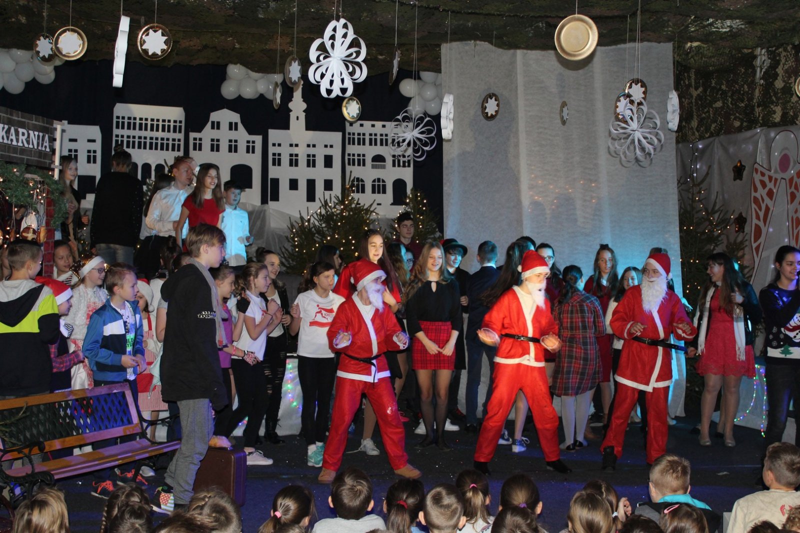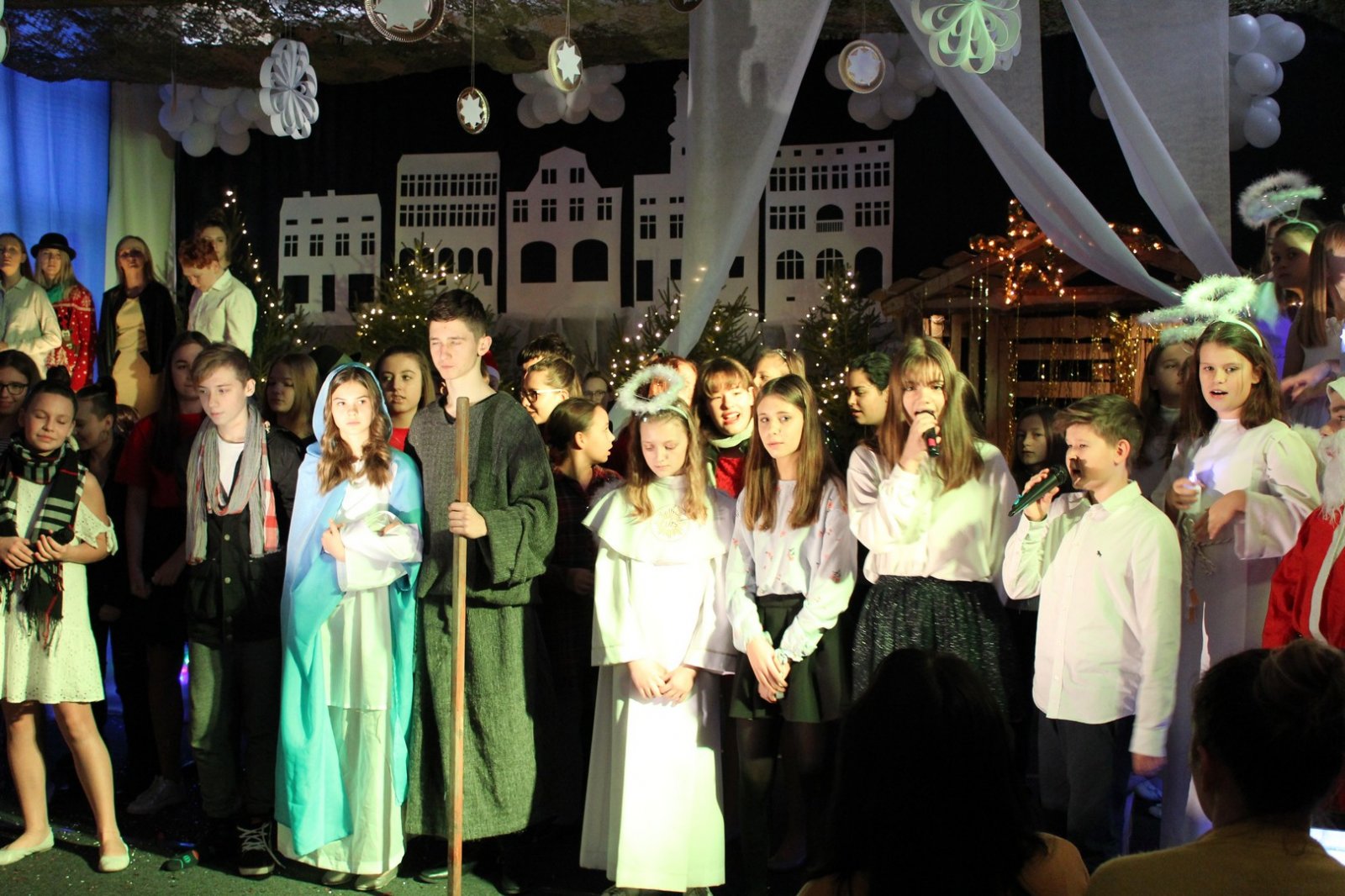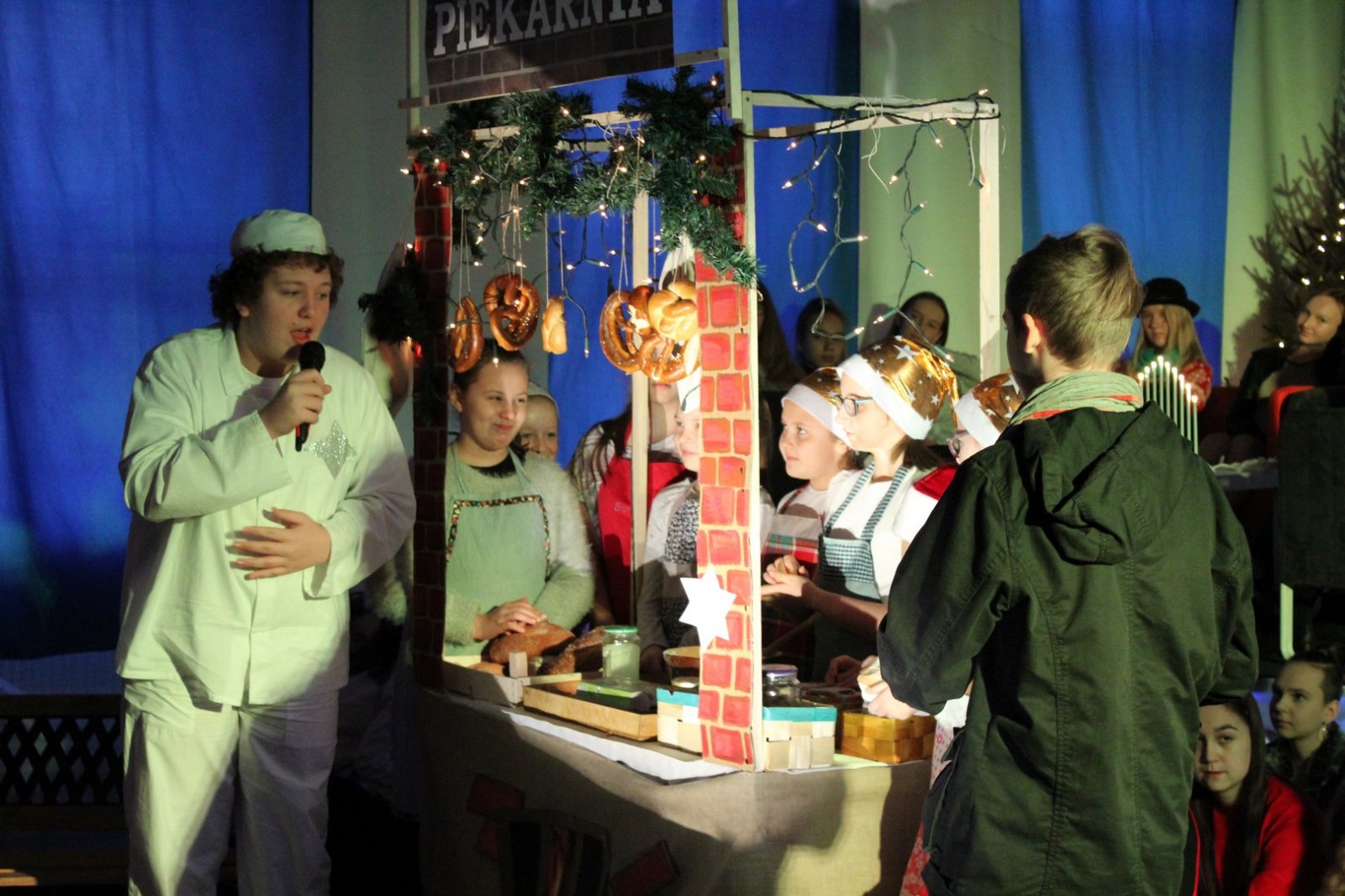 nosił tytuł „Chłopiec z zapalniczkami”. W rolę tytułowego bohatera wcielił się nasz uczeń Krystian Stańczykiewicz, do niedawna aktor Teatru Rozrywki w Chorzowie. Gościnnie, z wykonaniem piosenki Zbigniewa Wodeckiego wystąpiła nasza absolwentka p.Karolina Stąpor. W przedstawieniu brała udział prawie "setka" uczniów z klas 4-8, która przez 4 kolejne dni wzbudzała zachwyt wśród zgromadzonych rodziców i ich rodzin, przedstawicieli Rady Miasta, nauczycieli i pracowników oraz uczniów "Trójki". Pani Dyrektor Anna Janik złożyła wszystkim świąteczne życzenia, a dzieci i młodzież swoim pięknym śpiewem i grą wprowadzili nas w świąteczny klimat.