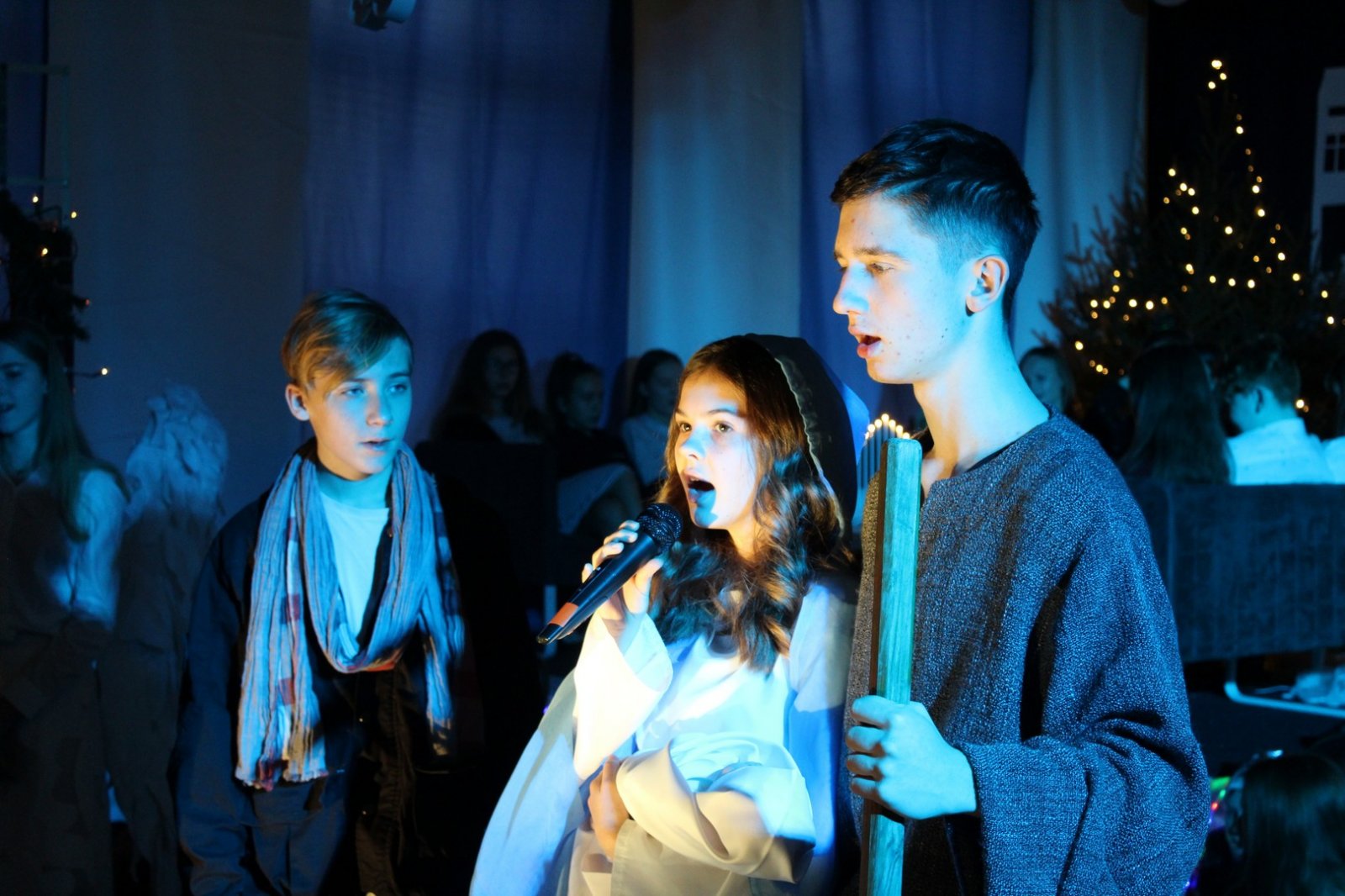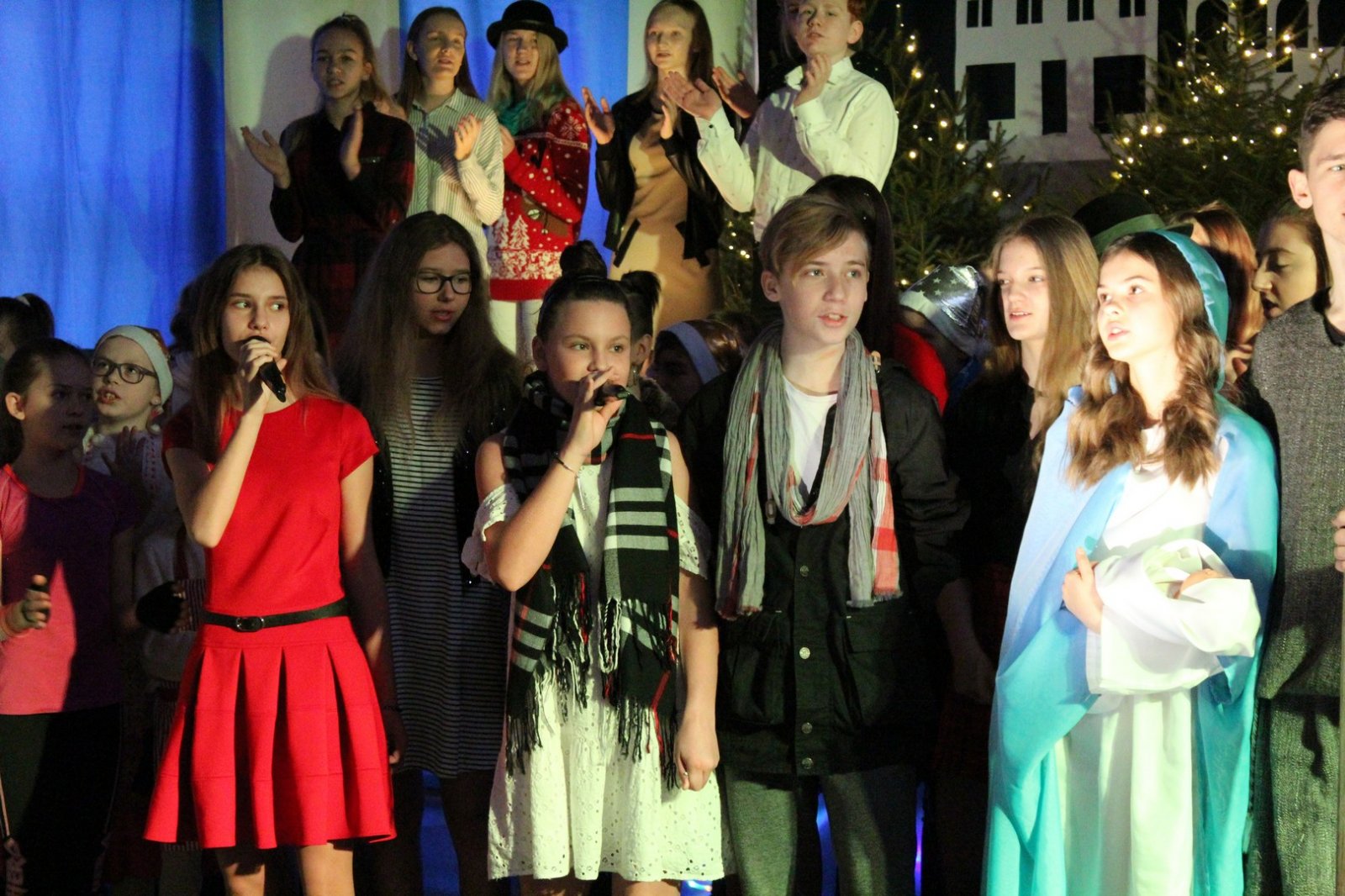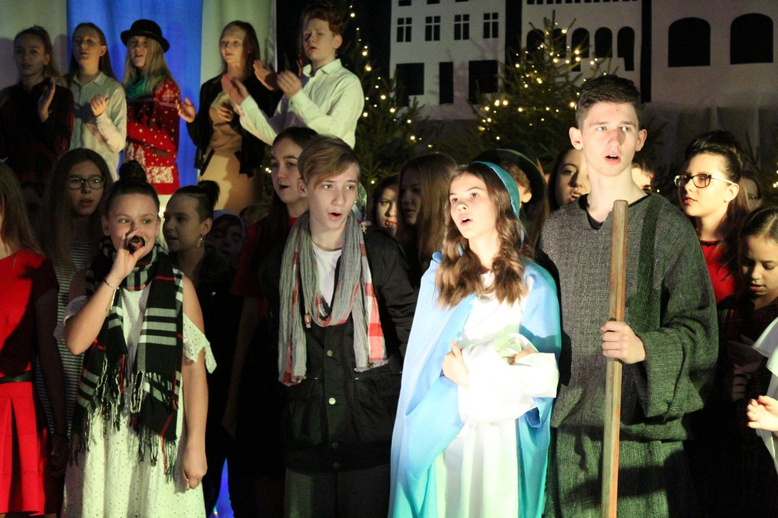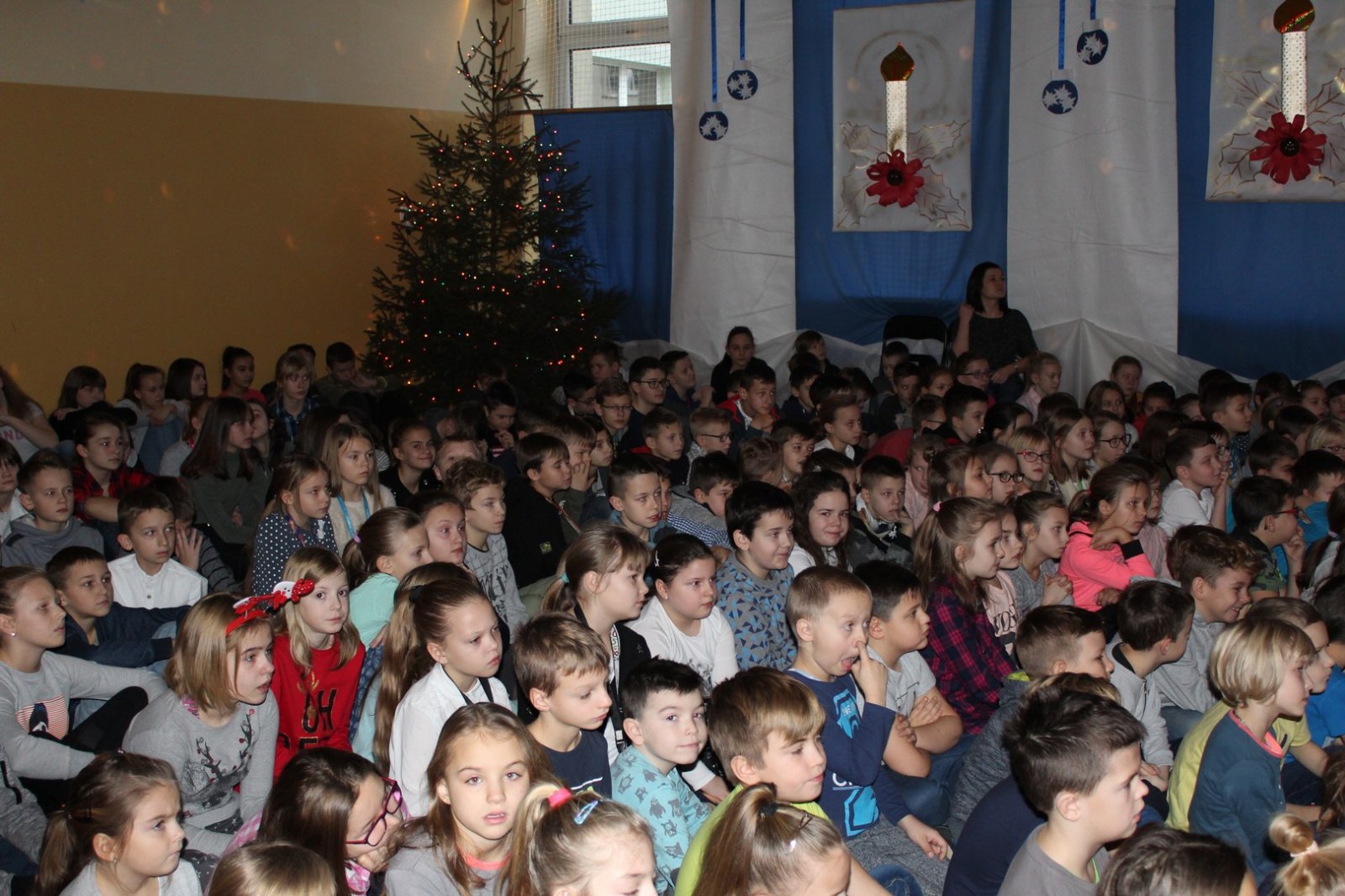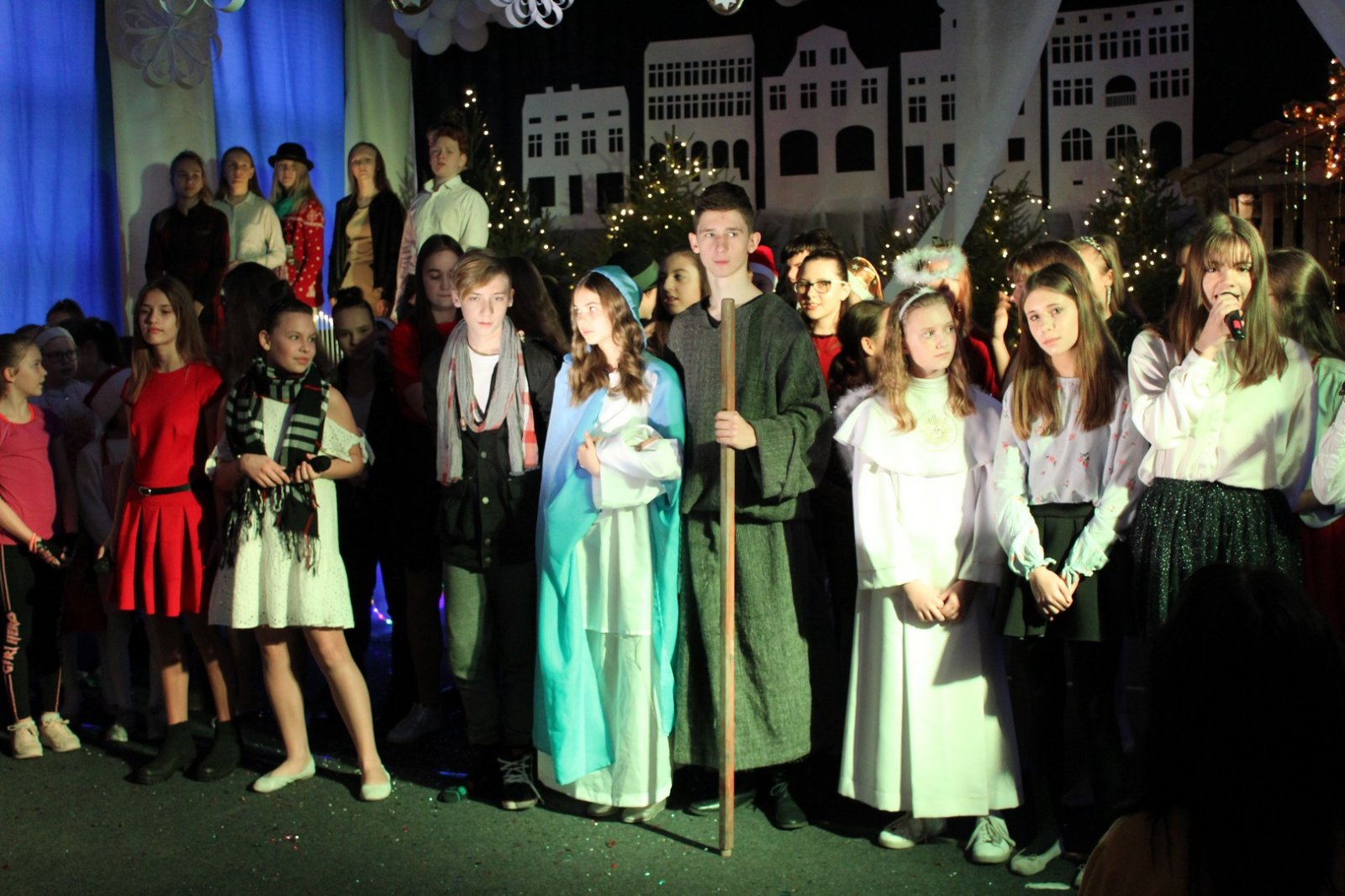 nosił tytuł „Chłopiec z zapalniczkami”. W rolę tytułowego bohatera wcielił się nasz uczeń Krystian Stańczykiewicz, do niedawna aktor Teatru Rozrywki w Chorzowie. Gościnnie, z wykonaniem piosenki Zbigniewa Wodeckiego wystąpiła nasza absolwentka p.Karolina Stąpor. W przedstawieniu brała udział prawie "setka" uczniów z klas 4-8, która przez 4 kolejne dni wzbudzała zachwyt wśród zgromadzonych rodziców i ich rodzin, przedstawicieli Rady Miasta, nauczycieli i pracowników oraz uczniów "Trójki". Pani Dyrektor Anna Janik złożyła wszystkim świąteczne życzenia, a dzieci i młodzież swoim pięknym śpiewem i grą wprowadzili nas w świąteczny klimat.