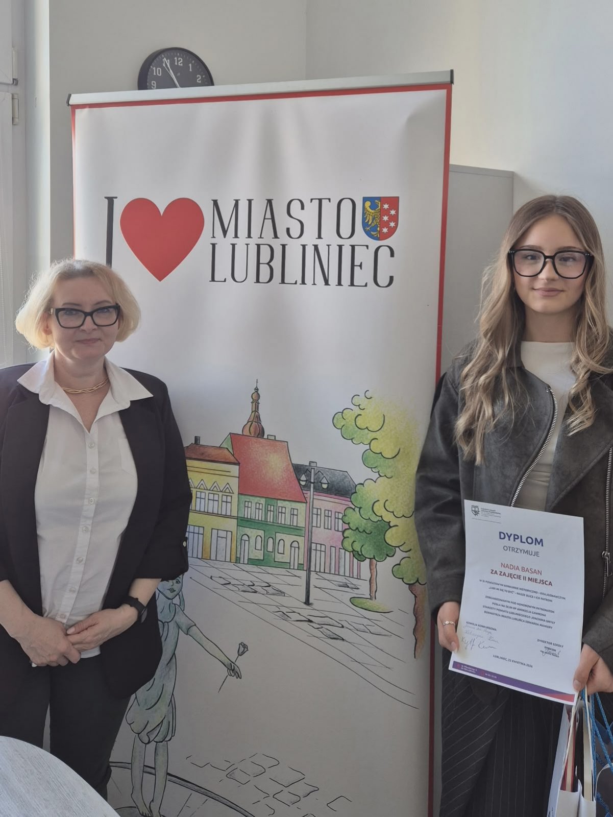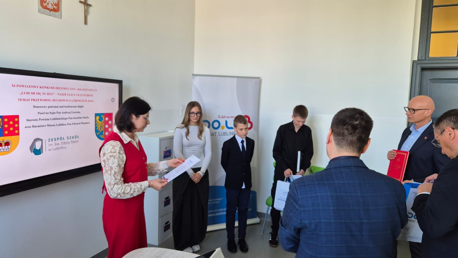 22 kwietnia w Katolickim Zespole Szkolno - Przedszkolnym im. św. Edyty Stein FEK w Lublińcu został rozstrzygnięty XI POWIATOWY KONKURS HISTORYCZNO - KRAJOZNAWCZY "LUBI MI SIĘ TU BYĆ" - NASZE ULICE I ICH PATRONI. Konkurs został zorganizowany pod honorowym patronatem Posła na Sejm RP Pana Andrzeja Gawrona, Starosty Powiatu Lublinieckiego Pana Joachima Smyły i Burmistrza miasta Lublińca Pana Edwarda Maniury. W tym roku tematem przewodnim konkursu byli duchowni z Górnego Śląska. Miło nam zakomunikować, że uczennica naszej szkoły - Nadia Basan z kl.8C zajęła w konkursie II miejsce. W swojej prezentacji uczennica przedstawiła ulicę i sylwetkę ks. płk. Jana Szymały. Serdecznie Nadii gratulujemy i życzymy dalszych sukcesów.