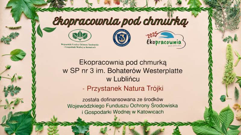 Z radością informujemy, że nasza szkoła wzięła udział w III edycji konkursu Ekopracownia pod chmurką organizowanego przez Wojewódzki Fundusz Ochrony Środowiska i Gospodarki Wodnej w Katowicach i zdobyła fundusze na realizację ekologicznej przestrzeni edukacyjnej na świeżym powietrzu!