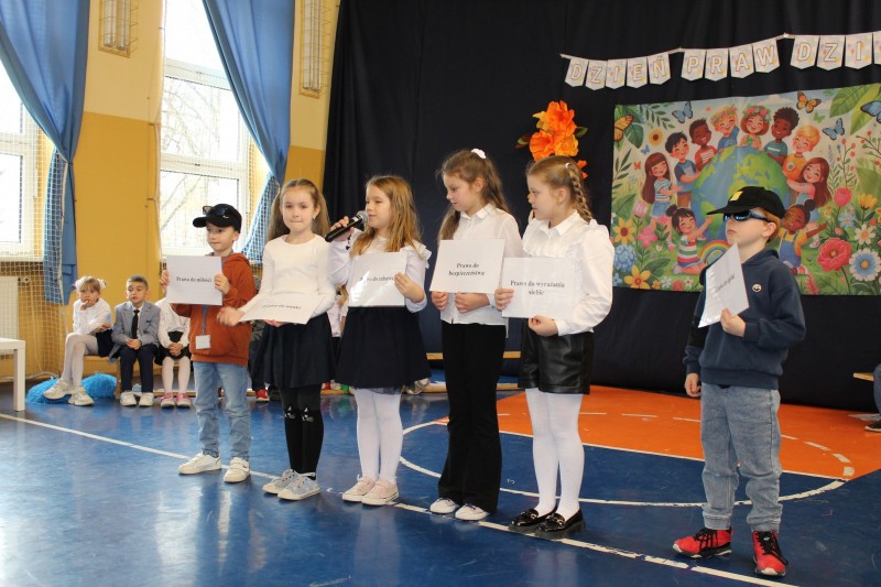Z okazji Międzynarodowego Dnia Praw Dziecka uczniowie klasy II c przygotowali wyjątkowy, pełen energii i humoru występ, którego celem było przybliżenie społeczności szkolnej najważniejszych praw przysługujących wszystkim dzieciom. Podczas apelu artyści zaprezentowali własną interpretację Urzędu Praw Dziecka, przedstawioną w lekki, humorystyczny sposób. Uczeń wcielił się w rolę „inspektora”, który z zaangażowaniem sprawdzał, czy prawa dzieci są należycie przestrzegane. Publiczność mogła również obejrzeć materiał przygotowany przez „Dziecko Tv”, w którym dzieci przeprowadzały wywiad na temat swoich praw – prostymi słowami, szczerze i często bardzo zabawnie. Występ uświetniły także układy taneczne oraz piosenki nawiązujące do tematyki praw dziecka. Dzięki nim apel nabrał wyjątkowej dynamiki, a uczniowie mogli wyrazić emocje również poprzez ruch i muzykę. Cała klasa II c z dużą świadomością i entuzjazmem przekazała wiedzę dotyczącą praw dziecka, pokazując, że temat jest im bliski i ważny. Finałem wydarzenia było wspólne utworzenie hasła „Dzieci mają głos!”, które wybrzmiało mocno i symbolicznie. Apel zakończył się podsumowaniem Tygodnia Życzliwości, podczas którego cała społeczność szkolna podejmowała działania promujące dobroć, szacunek i wzajemne wsparcie. Występ klasy II c był nie tylko okazją do nauki i refleksji, ale także pięknym pokazem współpracy i kreatywności uczniów. Brawo dla wszystkich występujących!