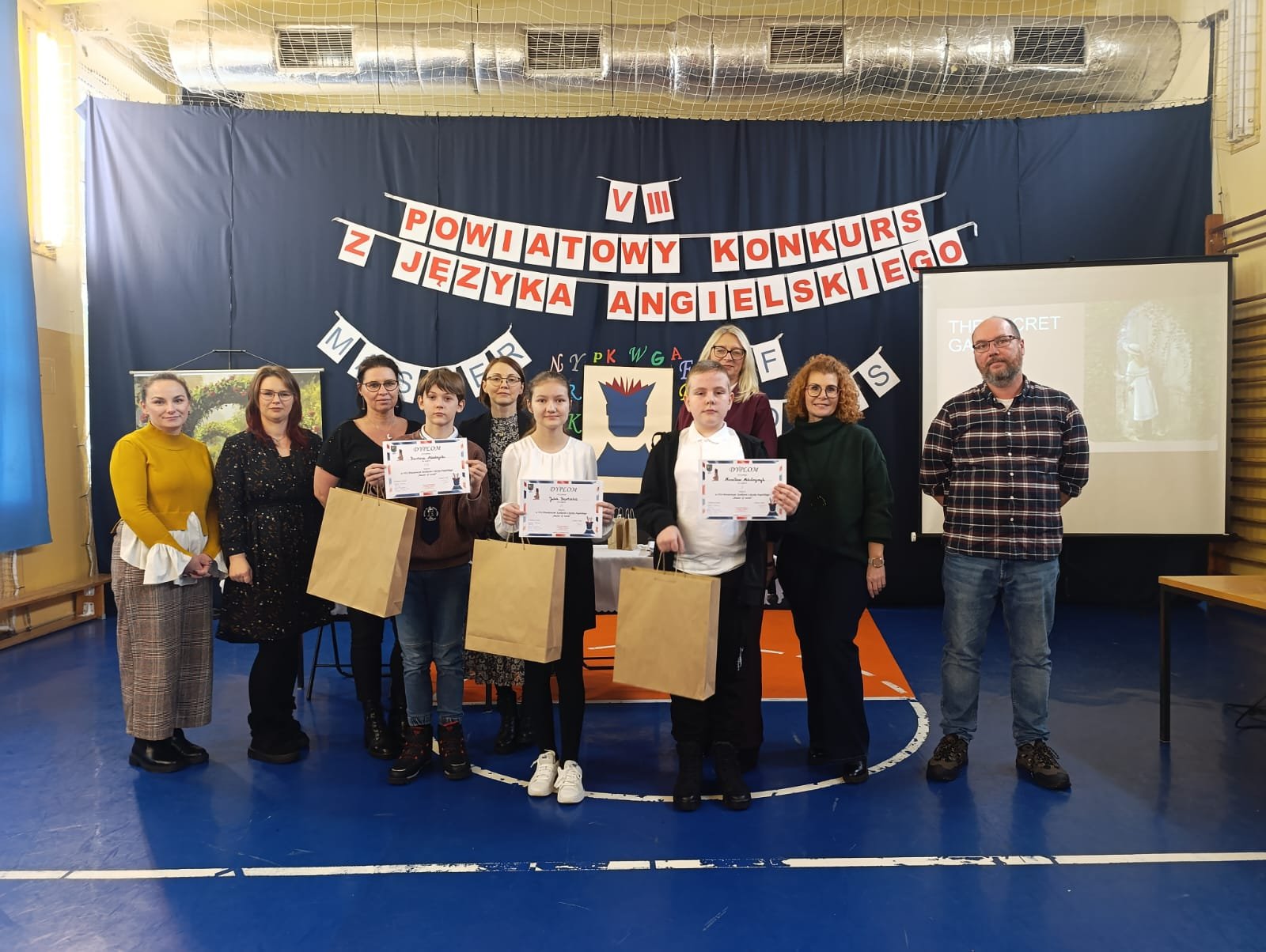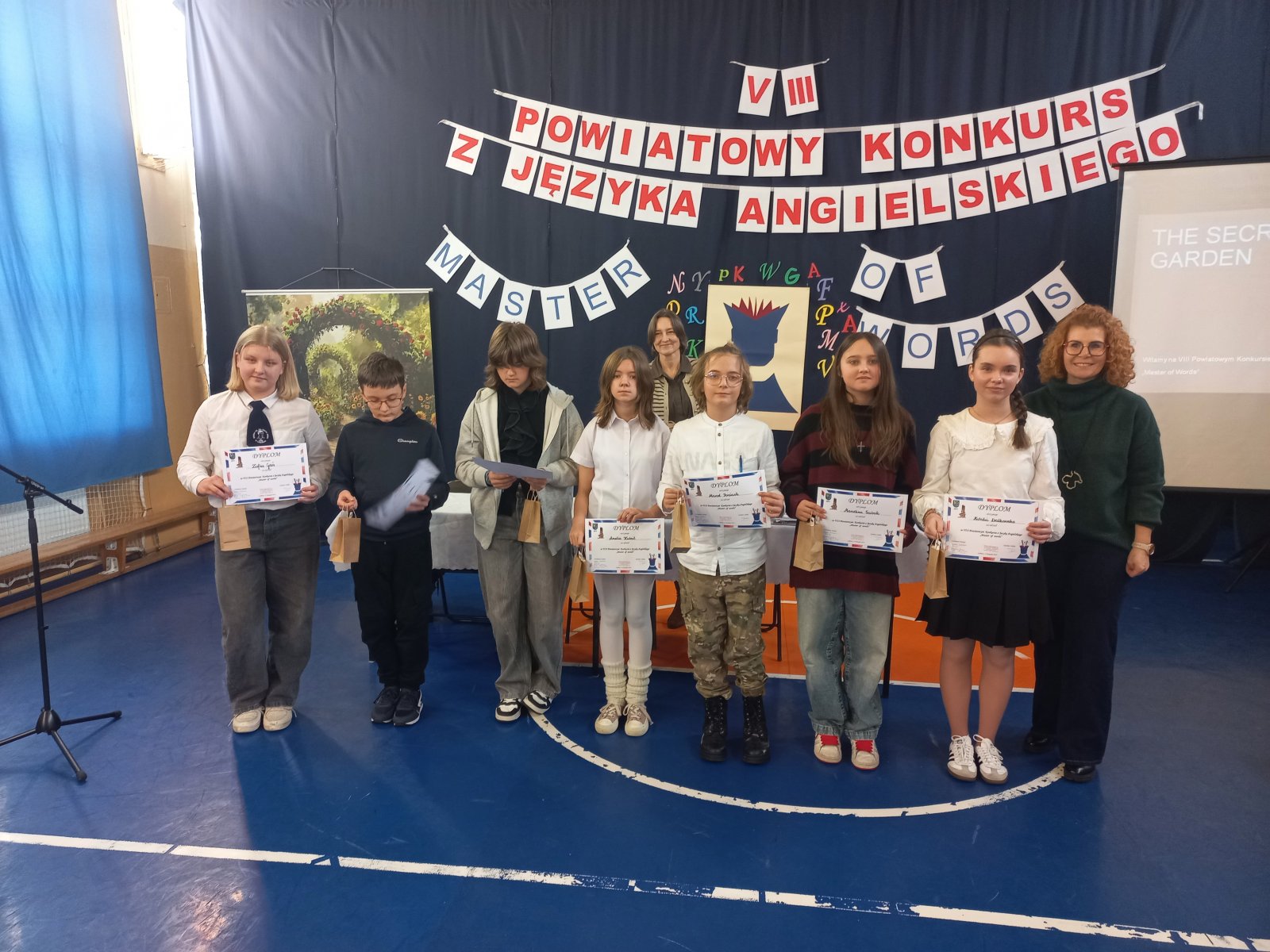 27 listopada 2025r. odbył się w naszej szkole VIII Powiatowy Konkurs z Języka Angielskiego "Master of Words". Do rywalizacji przystąpili uczniowie kl.5-6 z 6 szkół naszego powiatu. Każdą szkołę mogło reprezentować dwoje uczniów. Zadania konkursowe obejmowały: dyktando, quiz językowy oraz literowanie wylosowanych wyrazów na czas. Laureatami konkursu zostali:
