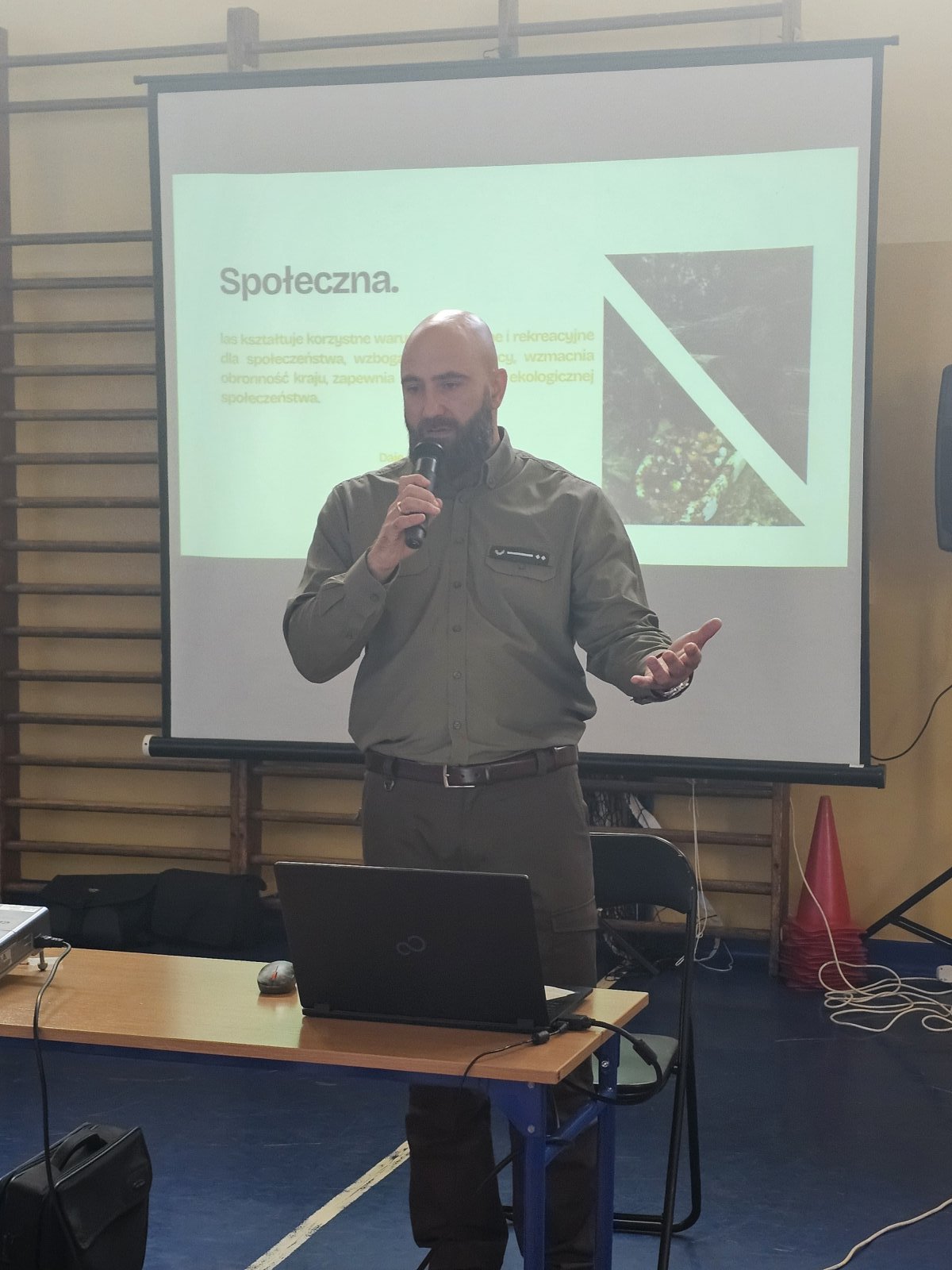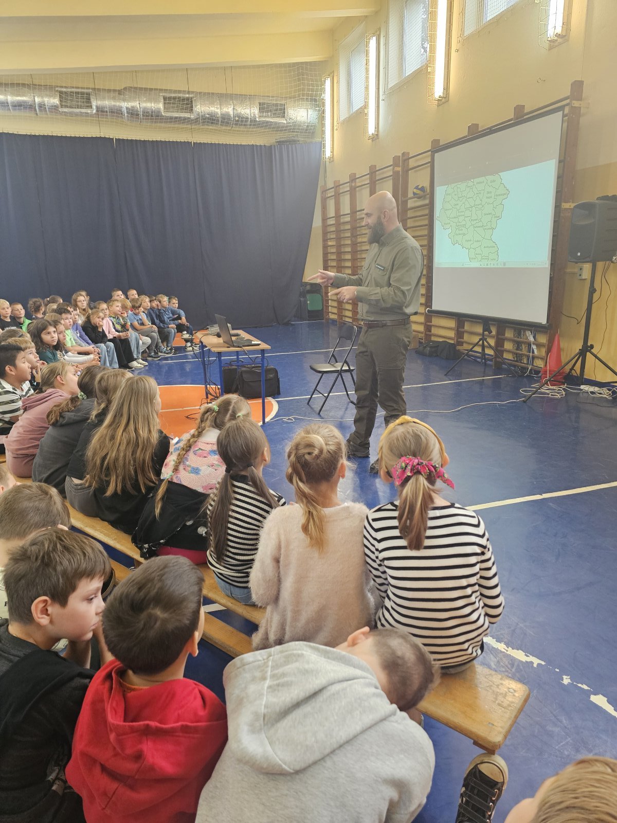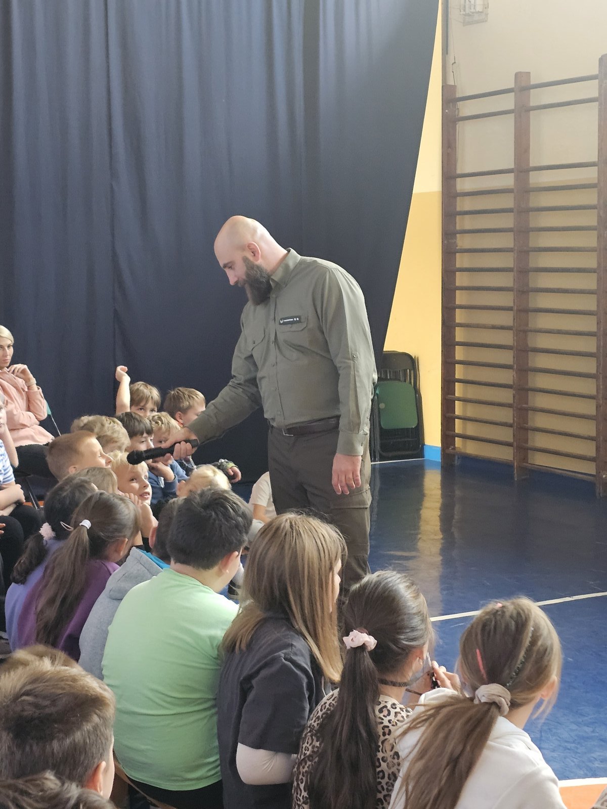 Uczniowie klas trzecich mieli okazję uczestniczyć w niezwykle ciekawym spotkaniu z  leśnikiem - panem Kamilem Łapokiem, który odwiedził naszą szkołę. Opowiedział on dzieciom o swojej codziennej pracy w lesie oraz o tym, jak ważne jest dbanie o nasze lasy. Uczniowie dowiedzieli się, jakie zadania wykonuje leśnik, jak rozpoznawać gatunki drzew i krzewów leśnych, jakie gatunki zwierząt spotykamy w lublinieckich lasach oraz jak rozpoznać ich tropy.