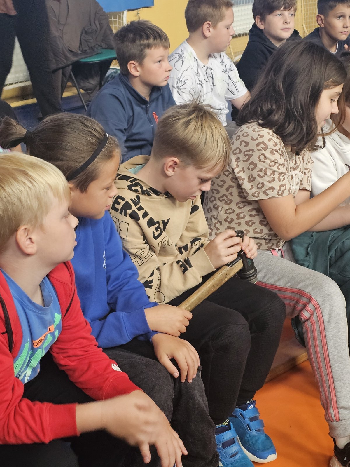 Podczas prezentacji dzieci mogły obejrzeć narzędzia pracy leśnika.Pan Kamil przypomniał również, jak należy zachowywać się podczas spacerów po lesie, aby nie szkodzić przyrodzie i nie płoszyć zwierząt.